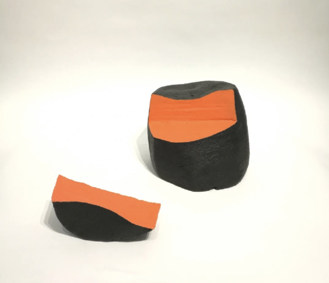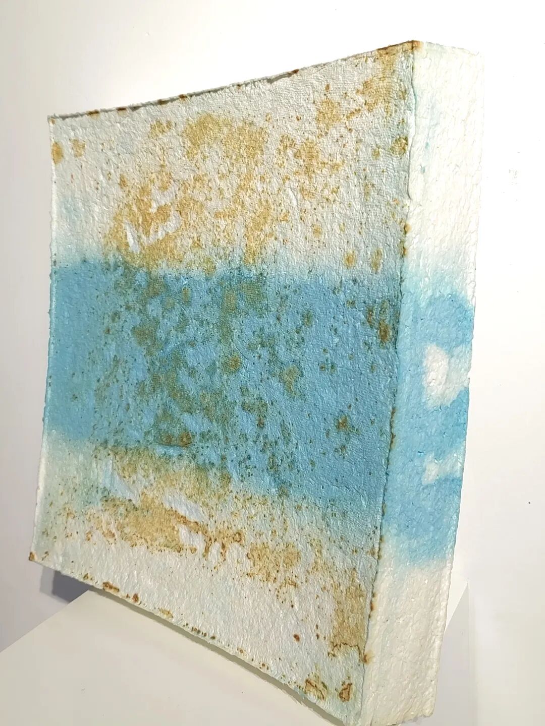 纸浆是时间打磨的印记,纸浆的搅拌就如同时间性的隐秘和空间性的浮现暗合了艺术家的心路历程。艺术家将日常、生活、色块、线条、形状、欲望逐渐消融在纸浆的再造中。性的隐匿、色彩悄然的沁入、隐现出细微之间的色润变化,艺术家将作品本身的形式、简洁的空间赋予了特色的含义。黄原每天的劳作将生活中强迫性的混乱与消沉转化为规则与专注,如同给自己开的一剂医药良方疗愈他内心的状态。艺术家利用自然材料带来的质感再次消解它们,水的注入、木的升华、色的入侵、光的结合、火的历练(黄原陶瓷作品)注定要在冲突和相互联系以及生生不息中产生强烈的戏剧感,凸显着世间万物不断变化的本质:“一乃万物之始”,“天地与我并生,而万物与我为一”。
