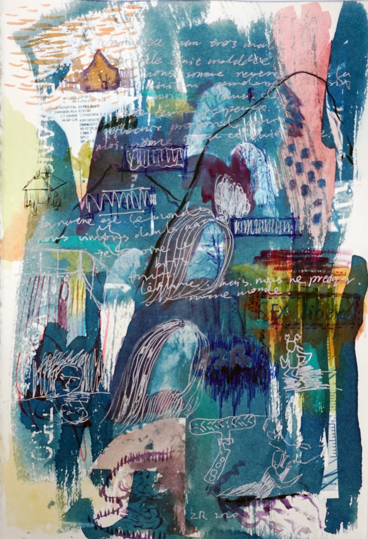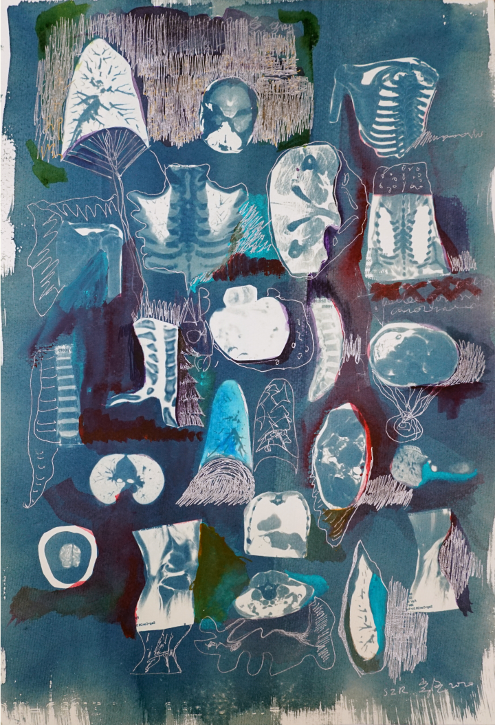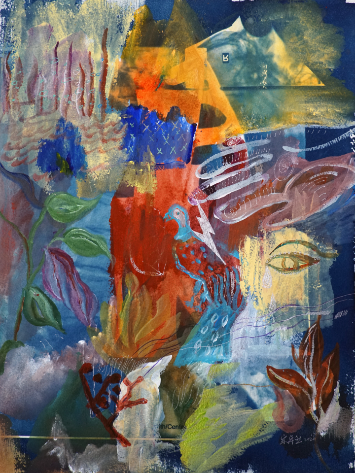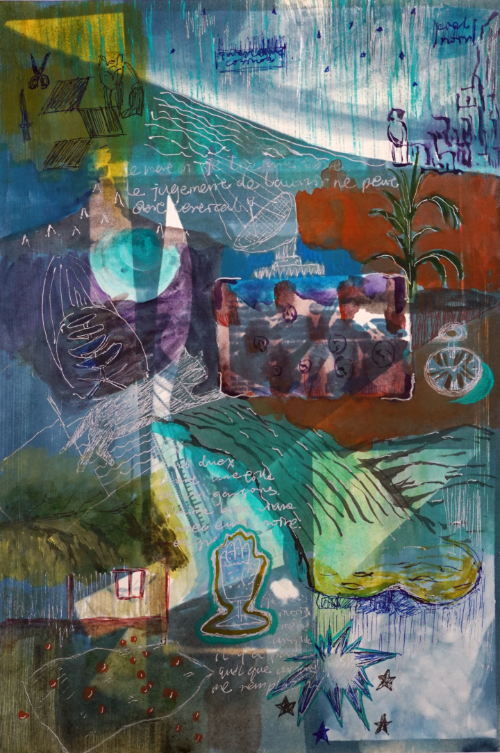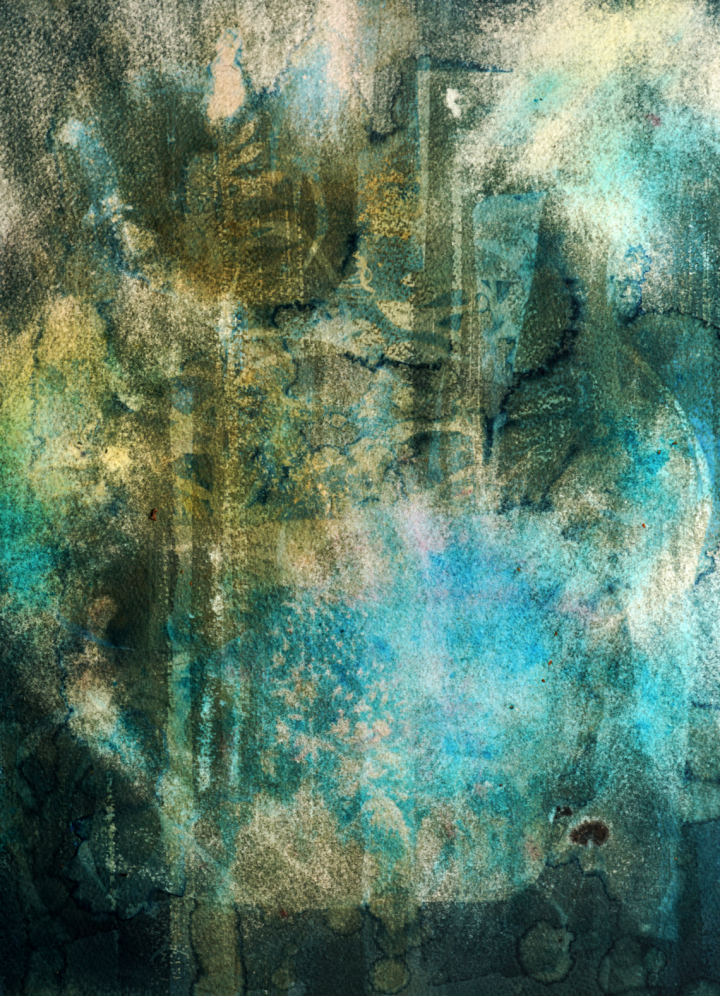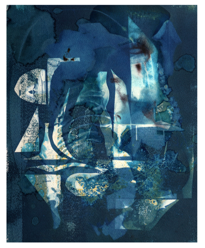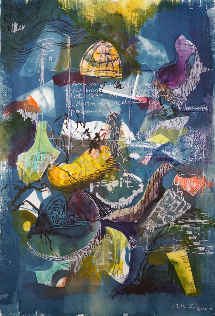Cyanotype,watercolor,ink,pen color, 41x31cm, French Arches Watercolor paper,2020- 2021