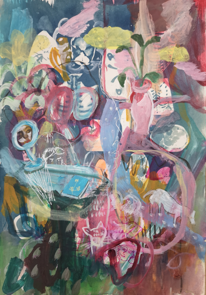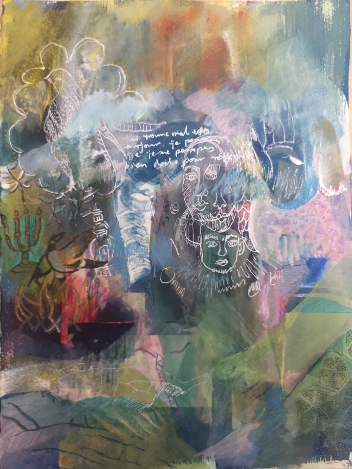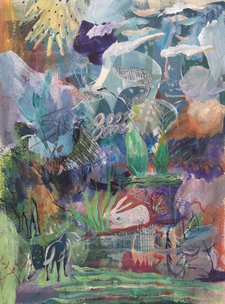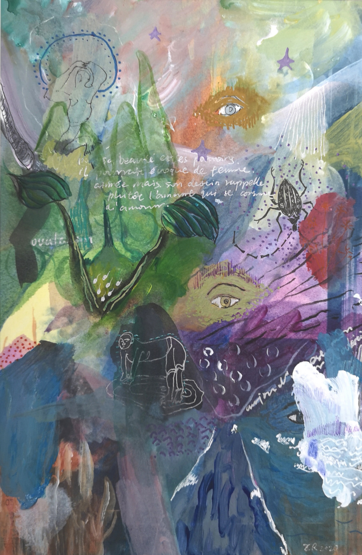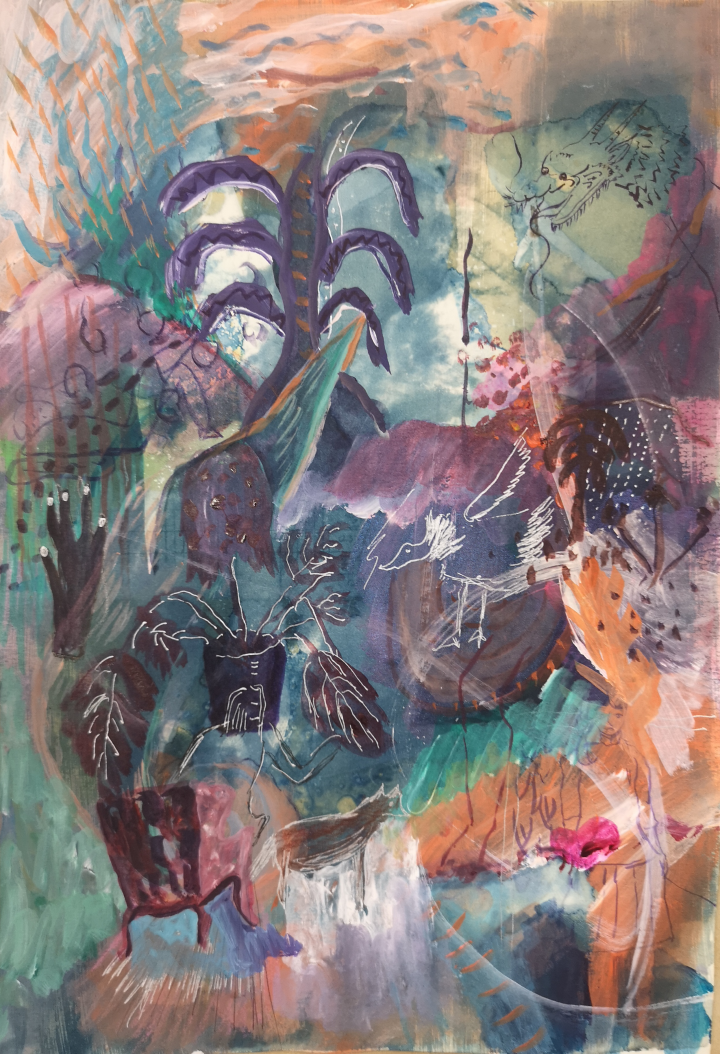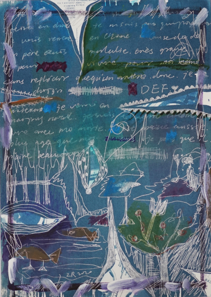Cyanotype,watercolor,ink,pen color, 41x31cm, French Arches Watercolor paper,2020- 2021