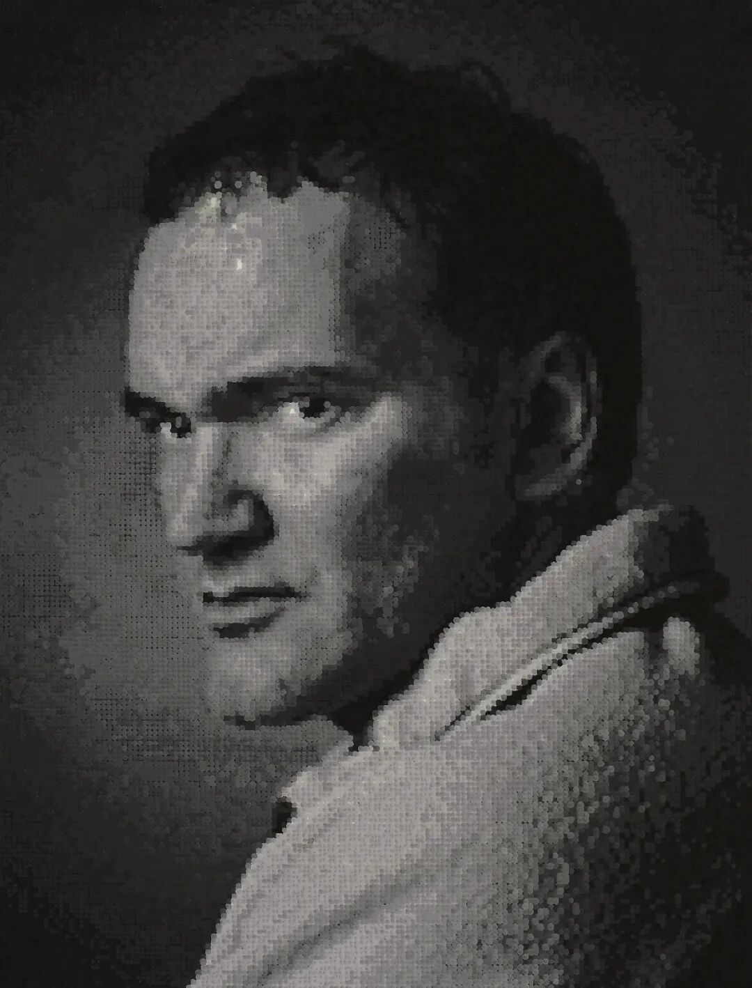 “世界名人肖像”是与摄影相关的绘画,是绘画又不是绘画,是摄影又不是摄影,是个悖论。内容上主要是些哲学家、科学家、文学家等的肖像,可能潜意识下我们就对知识、高科技、高智商的信仰和崇拜亦或反思,我的其它作品如用电子产品的主板、内存条、硬盘等制作的仿古代艺术品如青铜鼎器、金缕玉衣等之类的装置作品也是这个脉络的延续。