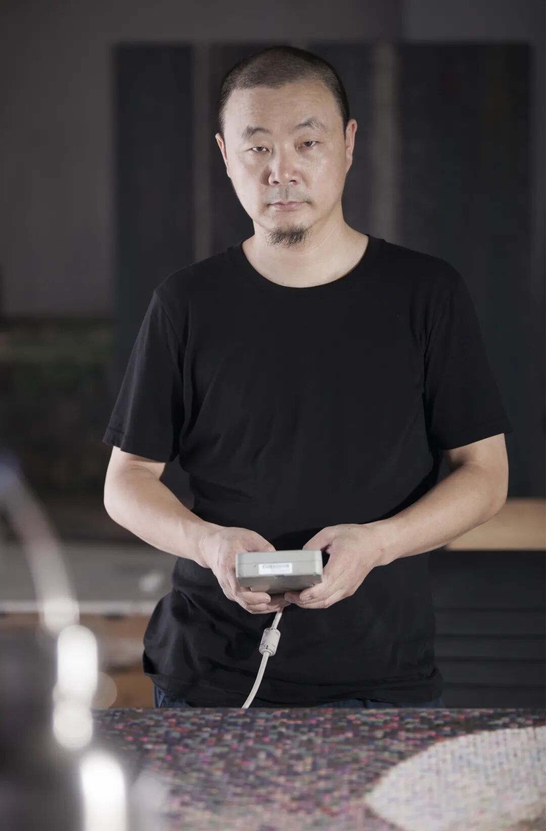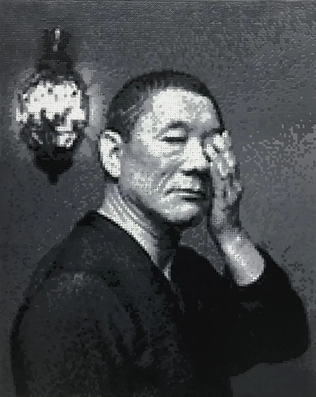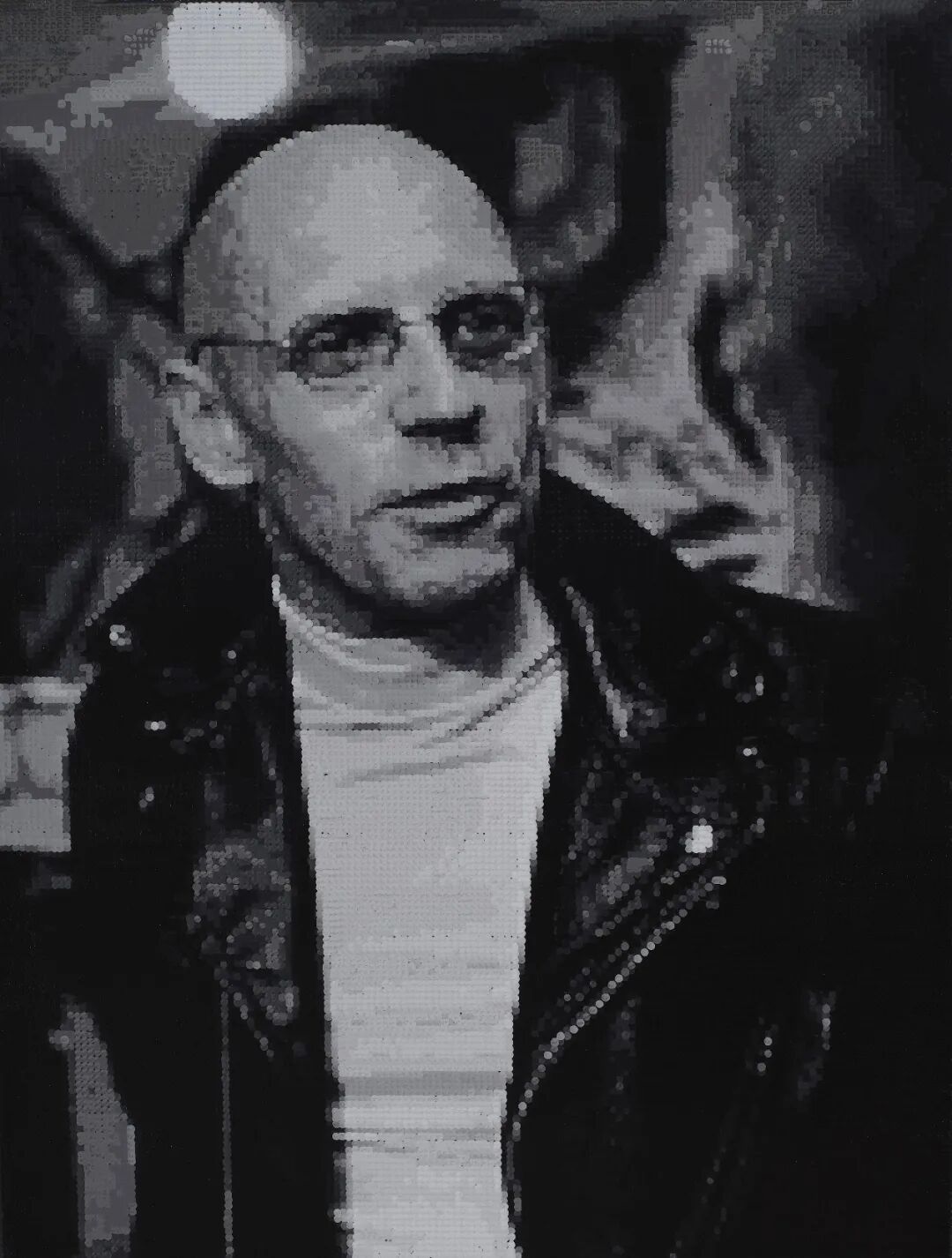 在2012年艺术家夏国的个展《美丽新世界》中,他用多种媒介体现其对这个用消费信息和物质叠合的社会的认知,其中不乏艺术家自我对现世悲剧化的隐喻和批判,但在2016年新展览《像素迷障》中,夏国的作品却刻意将主体性消除了,按作者所说2007年开始,就已经开始尝试以点画的的机械方式创作作品,这种去除主体性的创作却选择了像斯诺登、艾未未、陈光诚这样的形象出现,当然今天夏国在现场所展示的机器自动点绘的创作并不是一朝所至,其中也经历了全手工,半手工半机械,全自动的方式。这种利用机械臂的X Y轴运动来定点滴绘的方式,需要艺术家选购机床所需的部件,编程以及组装调试滴点的大小剂量。对于艺术家夏国,近10年的工作与其说是创作了一件作品,不如说是经历了一种不同于流行视角艺术家身份的演变。