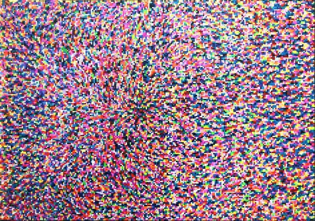 (How):对于绘画作品来说,笔触无疑是艺术家表达自我的一个很好的途径,但AMT机器人机械式的通过编程控制的“点绘”创作方式,似乎失去了表达的功能,您是如何看待这个问题的?