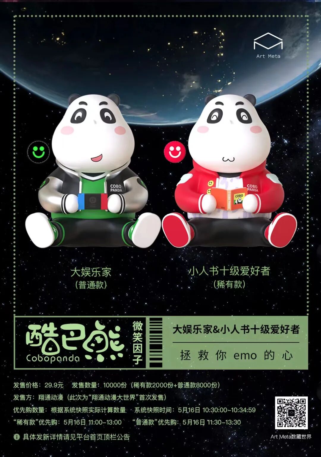 首期发售的“普通款”为《大娱乐家》,共计8000份;稀有款为《小人书十级爱好者》,共计2000份;“隐藏款”(“普通款”合成所得)为《首席陪吃官》。