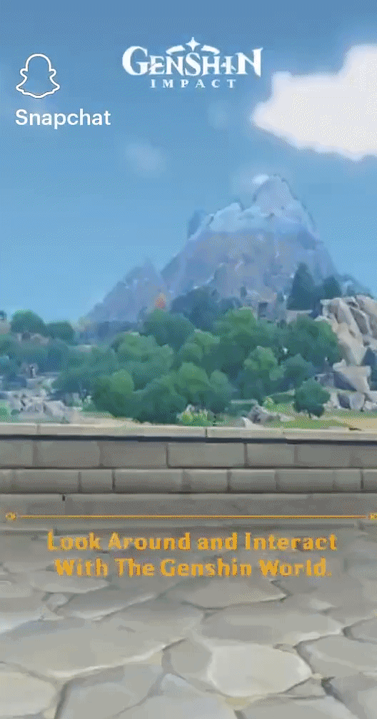 不只是影视作品,游戏中的IP形象、道具、场景等元素也能很好地与AR滤镜融合。知名游戏《原神》与Snap合作推出数款AR滤镜,在海外获得了非常高的关注度。