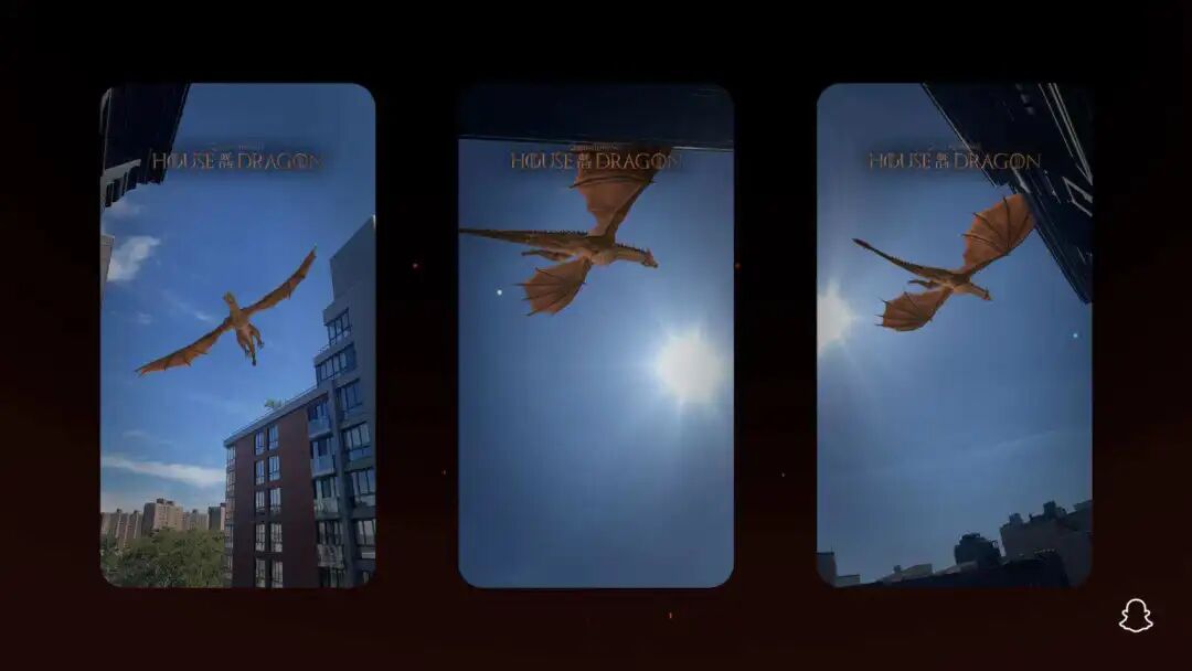 对于IP类型的宣传而言,社交平台内的AR滤镜体验仍是首选。以影视行业为例,《阿凡达2》、《龙之家族》等IP都开始与社交平台合作,在播出期间上线相关滤镜。