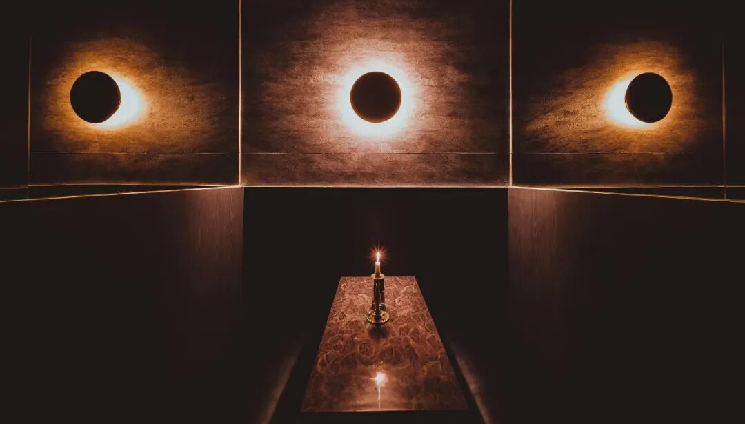如果细看ASPIRYNA太古里店的空间,会发现不少周周作为设计师兼艺术家的小心思,如桌上摆放的复古烛台,都是周周从欧洲各地的古董市场淘来的,还有颇具趣味的厕所,用的是半透明磨砂的自动上锁拉门,让人在本应最放松的如厕时刻却提心吊胆,担心门会突然打开。