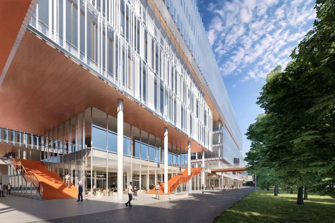 环廊提供空间增加校园配套设施,例如咖啡店、超市、书廊、室外休息区等。同时完善交通路径:通过人车分流优化地面交通和停靠区域,提供便捷的地下停车系统以及无障碍设施。
