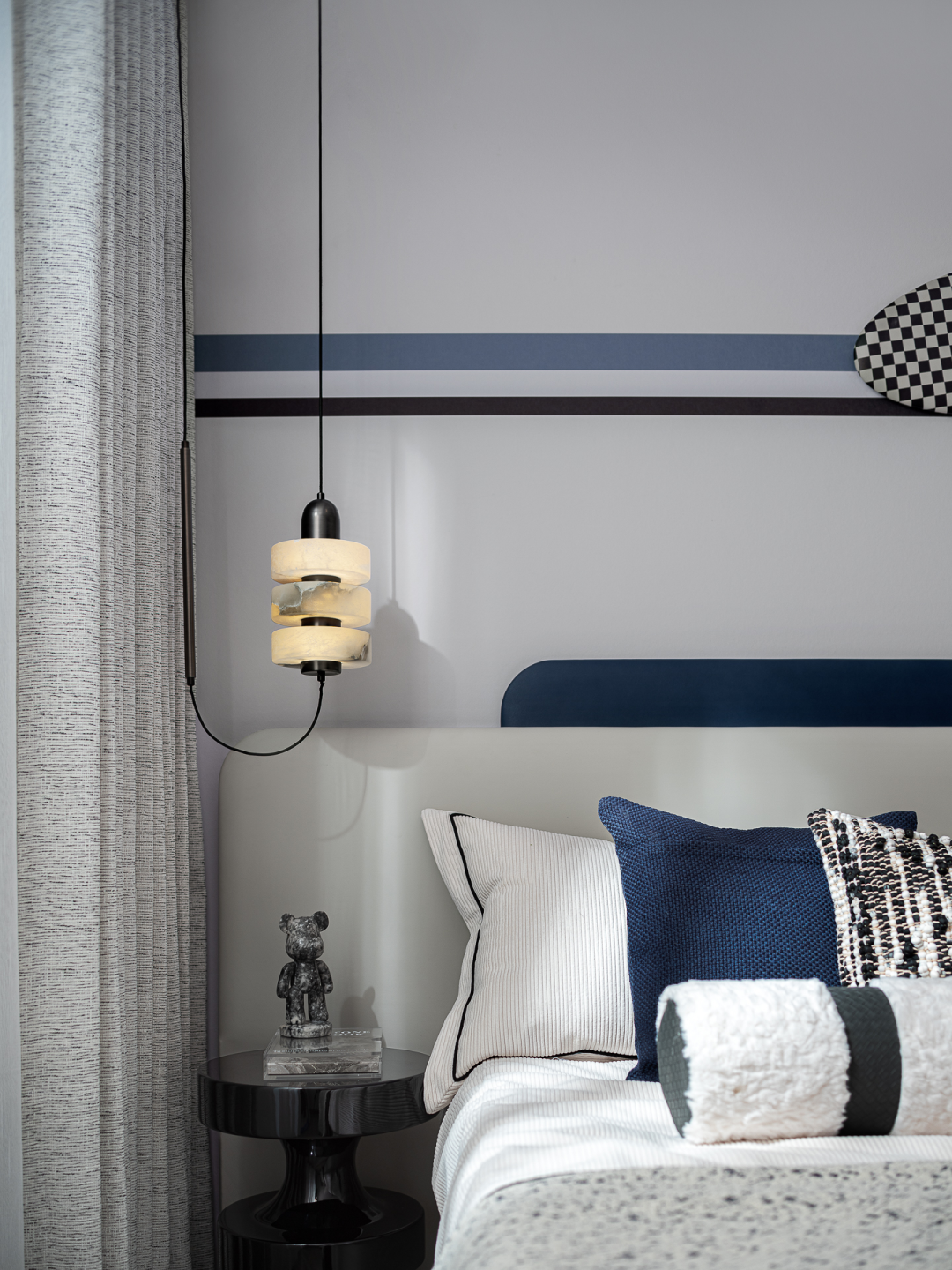 不盲从的Z世代,一向是拥有审美话语权的资深时尚客。源于对都会生活的再定义,设计师将其对理想家的共鸣点,落位于品质与艺术的细致描摹。以先锋的现代都会风格为铺叙,垂坠的床头玻璃灯饰与精尚的床品设色互映,在细节美感的和谐融合间,令曼妙灵动的生活意蕴,自由流动,自在舒展。