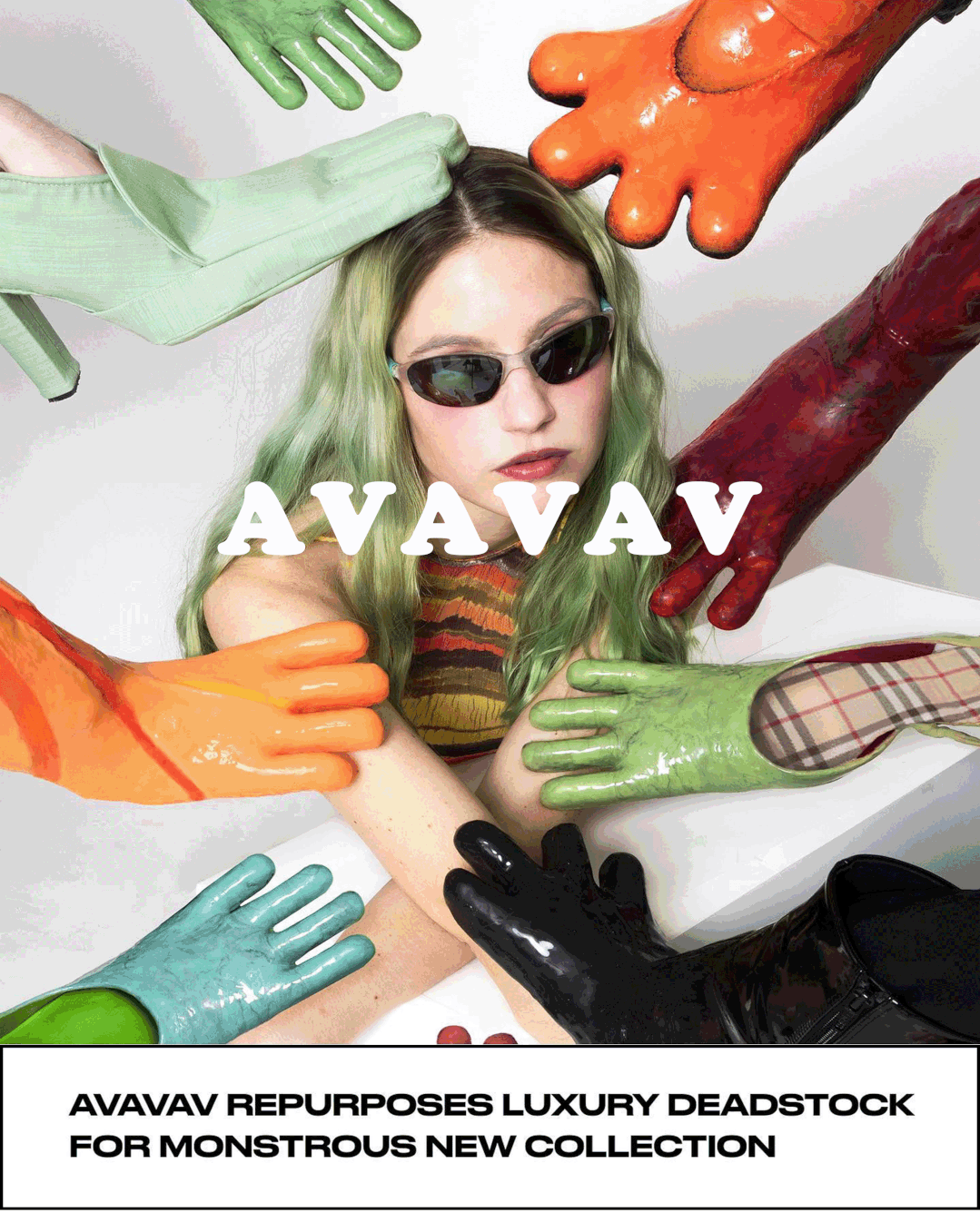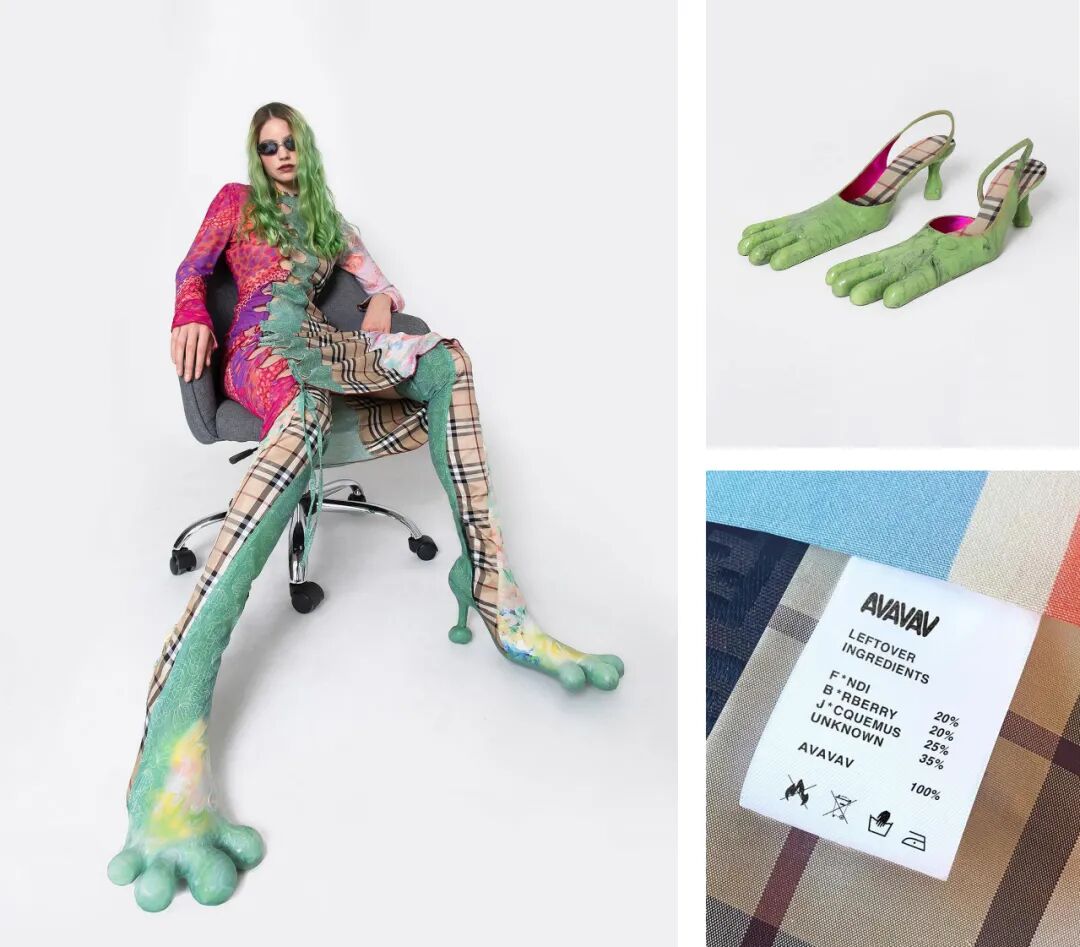意大利佛罗伦萨设计师品牌AVAVAV由Linda和Friberg于2017年创立,由Pyer Moss的设计师Beate Karlsson担任创意总监。品牌的核心理念是:可持续发展,垃圾就是宝藏;她们使用Burberry/Fendi/Jacquemus等品牌的废弃面料来进行设计。