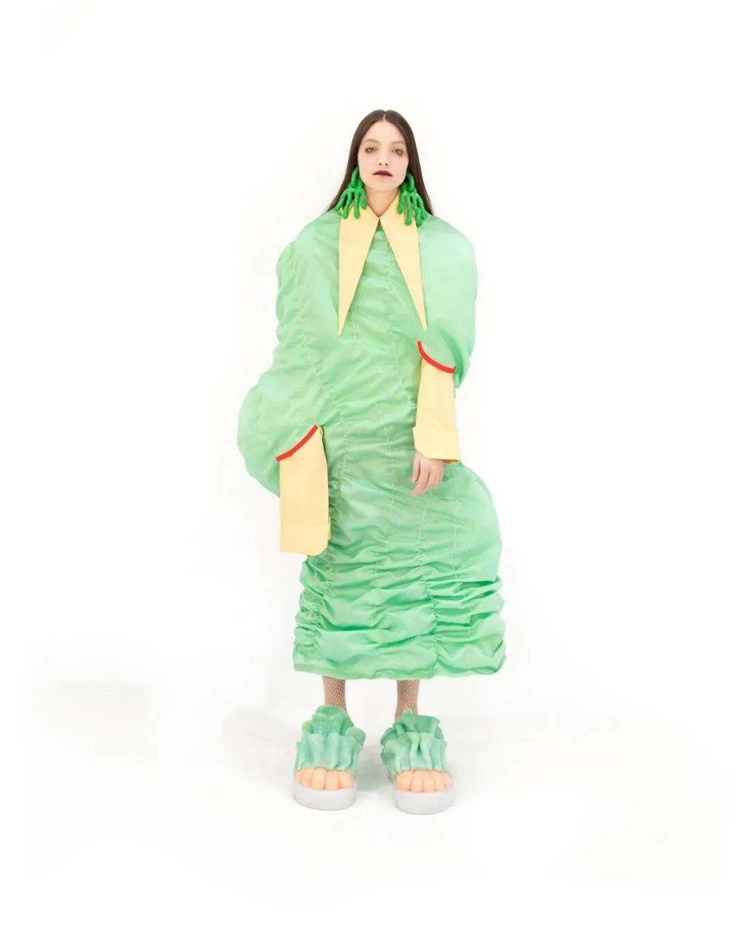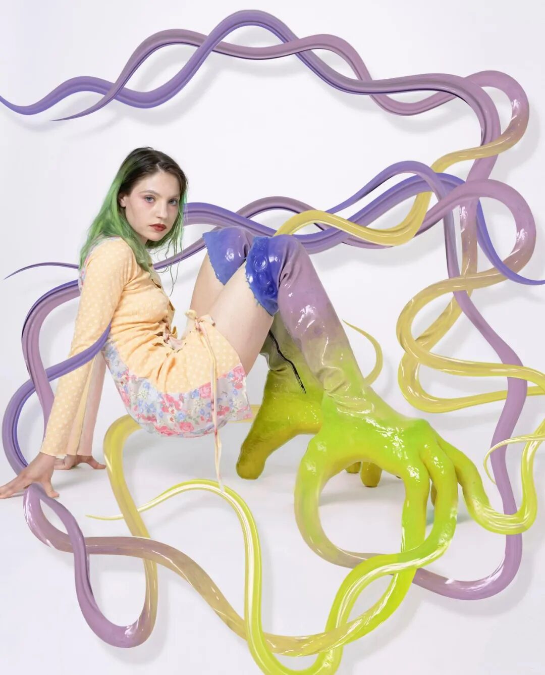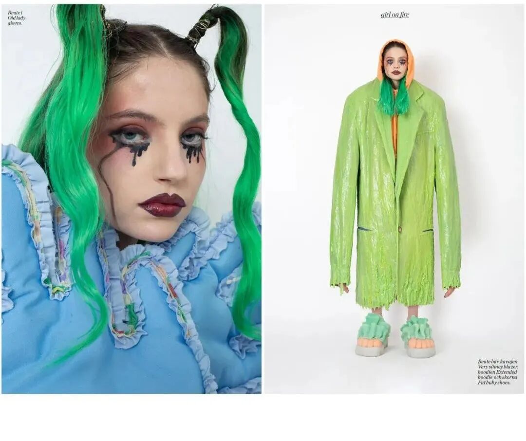 设计师Beate Karlsson的“怪诞”美学带来了极大的视觉冲击,她的时尚充满了实验性,颜色绮丽,甚至在她还是个孩子的时候,她就喜欢五颜六色的一切,柔软的有机形状,并受到现在的亚文化以及日本和韩国等国家的启发。