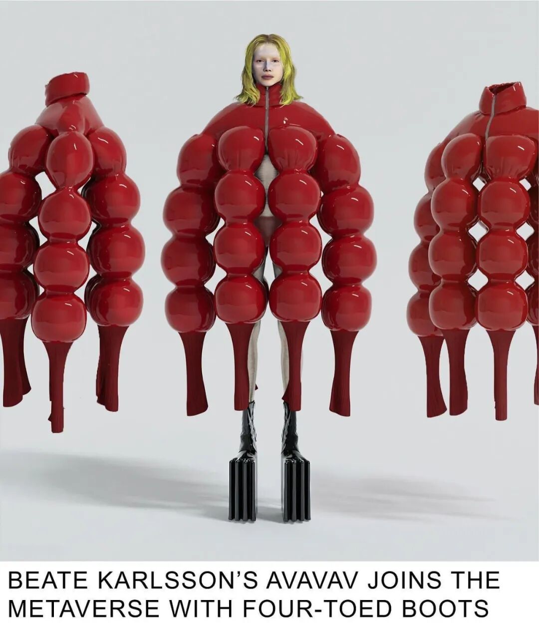 尽管有些人反对超时空,但 Karlsson 与 AVAVAV 合作的最新作品是一个很好的例子,说明了为什么数字时尚很重要。作为一名已经走在时代前沿的设计师,Karlsson 也分享了她对超时空中不设限的欣赏:“超时空最重要的一点是,舒适和着装规范都没有要求。”