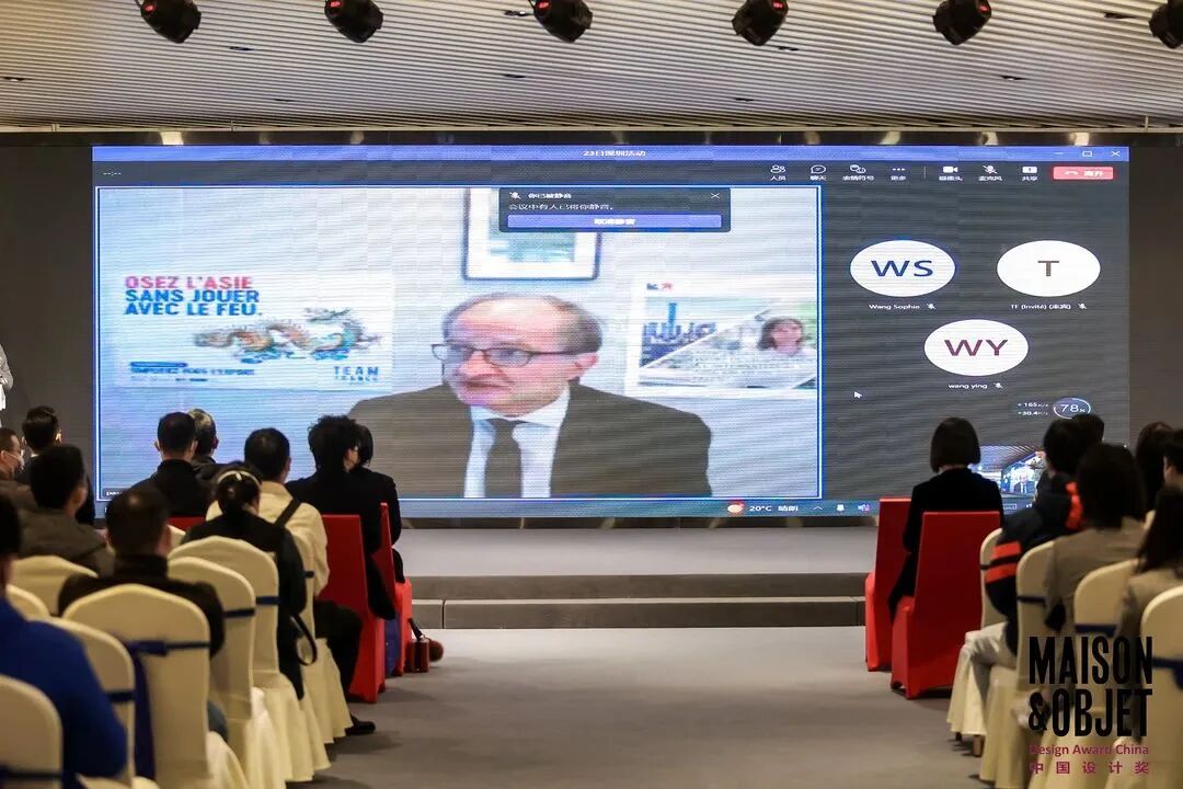法国驻华大使馆商务投资参赞、法国商务投资署中国区主任Pascal Gondrand先生为典礼远程线上致辞。Pascal Gondrand先生讲到很遗憾没能到深圳现场,但是将一如既往支持MAISON&OBJET中国设计奖的活动并致力于促进中法在设计领域的相关合作。