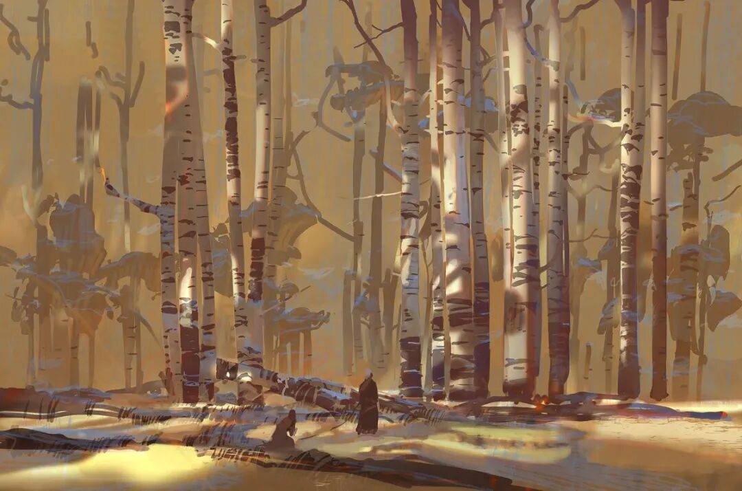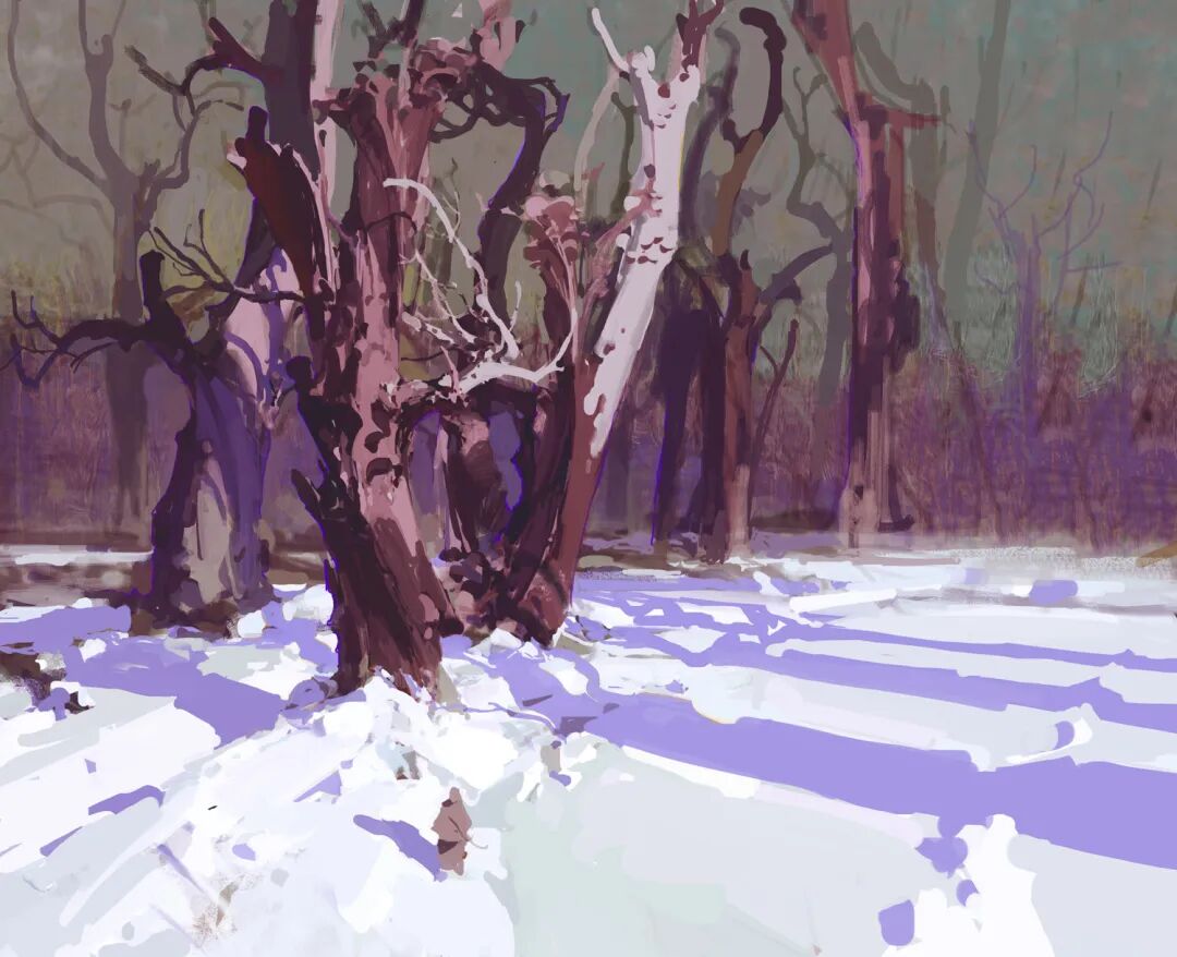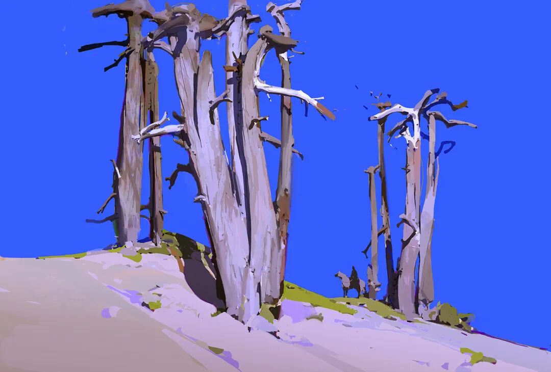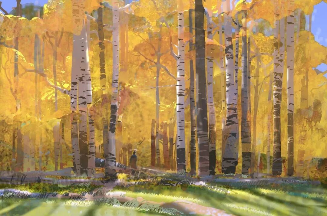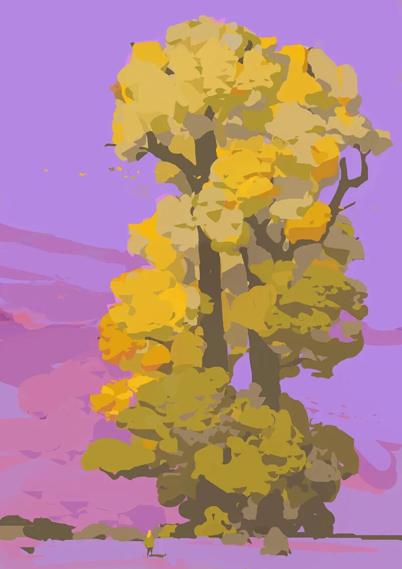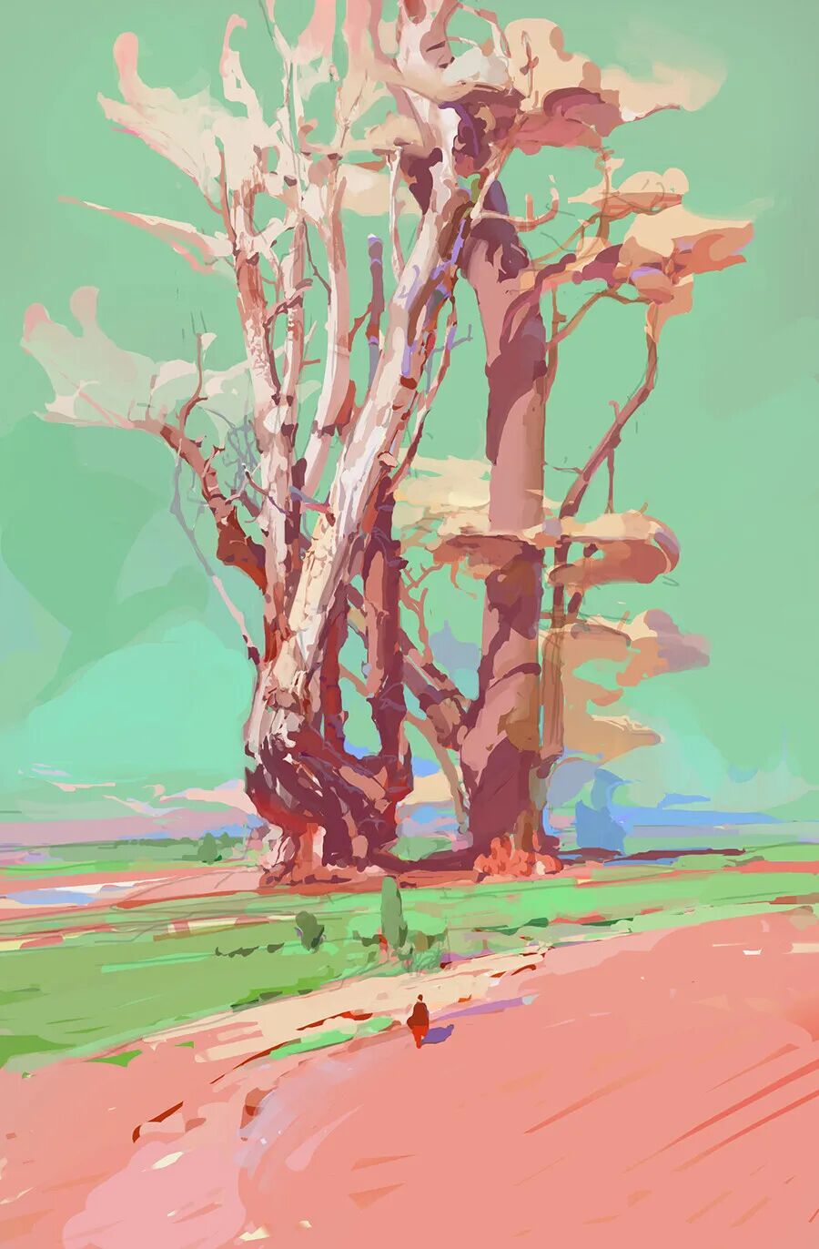 Min Yum又名Bumskee,擅长角色以及场景设计,不过作为A站著名的“专注于画树”的男人,他公开的作品大多数都是以各式各样的树为主题,色彩和光影氛围塑造非常强,画面给人的感觉干净静谧,却充满生命力。