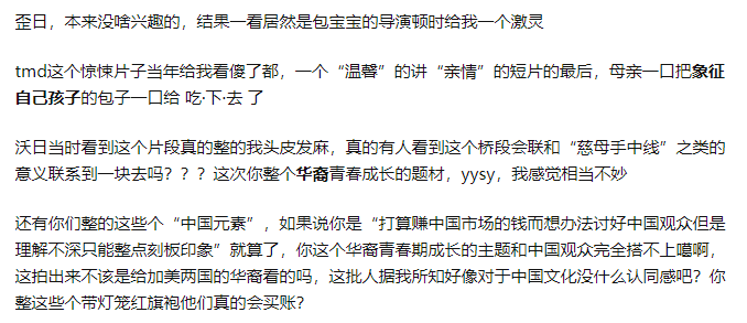 同时我也想和大家分享中国文化,以及华人社区中的食物和人文,这些与我成长的社区都密切相关,这部影片是一个完美的表达机会。”