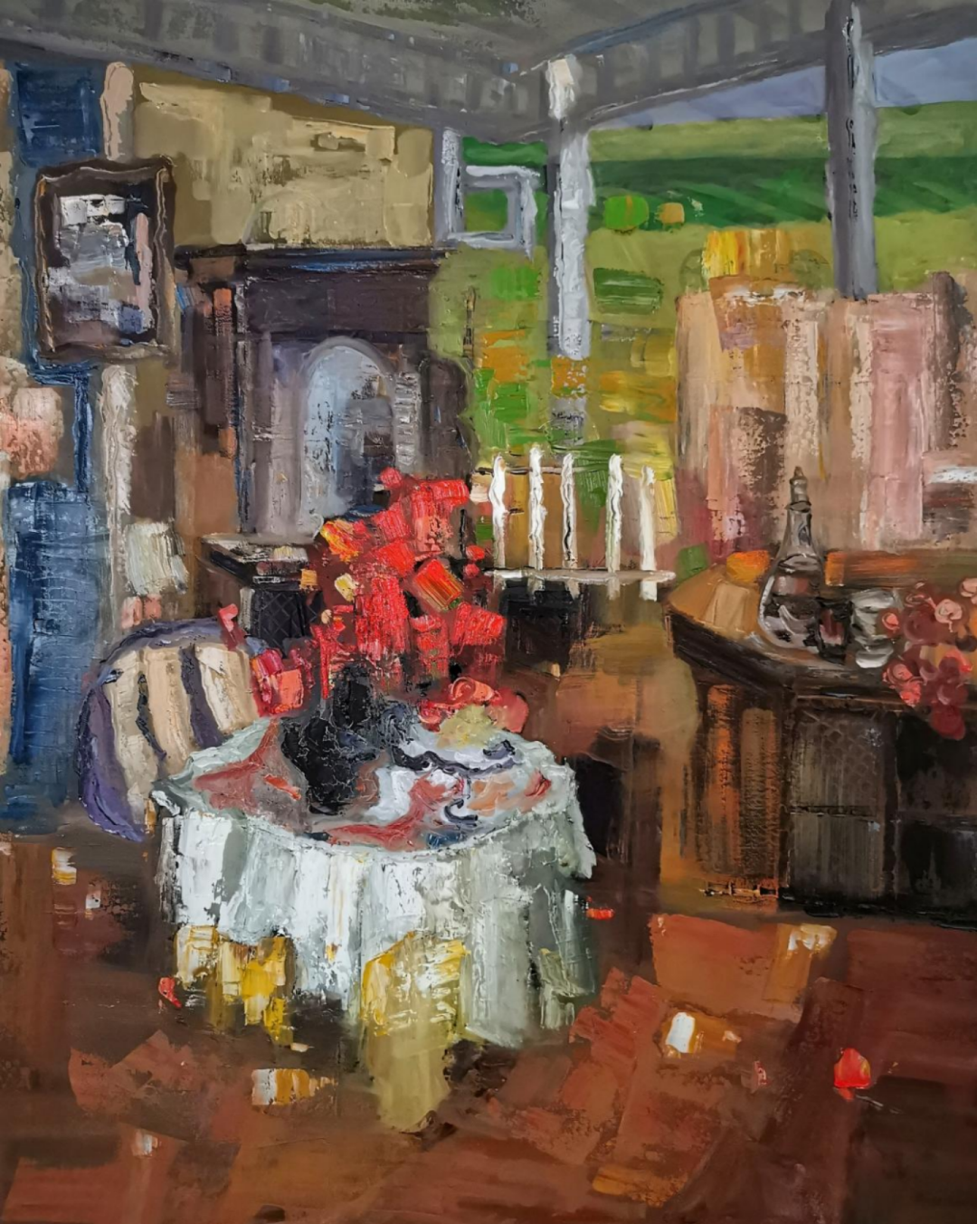 LIN Li/"Le vert derrière la fenêtre" 80×100cm huile sur toile 2020