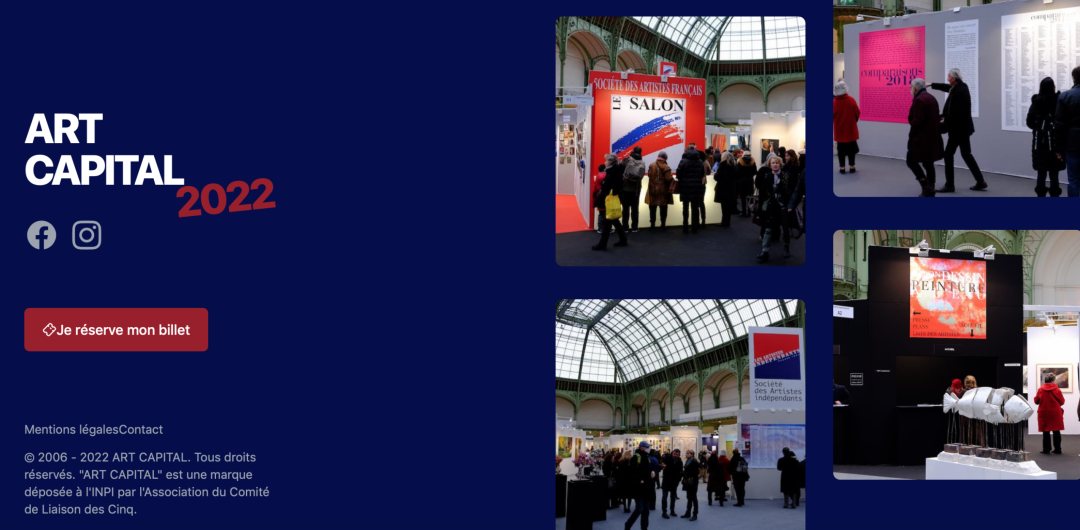 Les quatre salons historiques de Paris sont réunis sous le nom ART CAPITAL: Les Artistes Français, Les Artistes Indépendants, Comparaisons, Dessin et Peinture à l’eau.