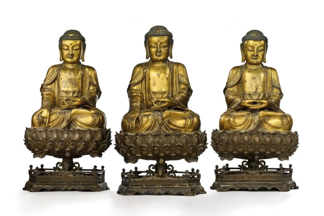 铜鎏金药师佛、释迦摩尼佛、阿弥陀佛三尊