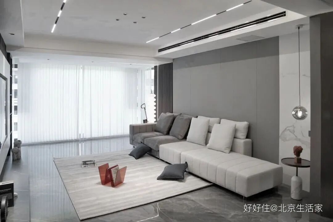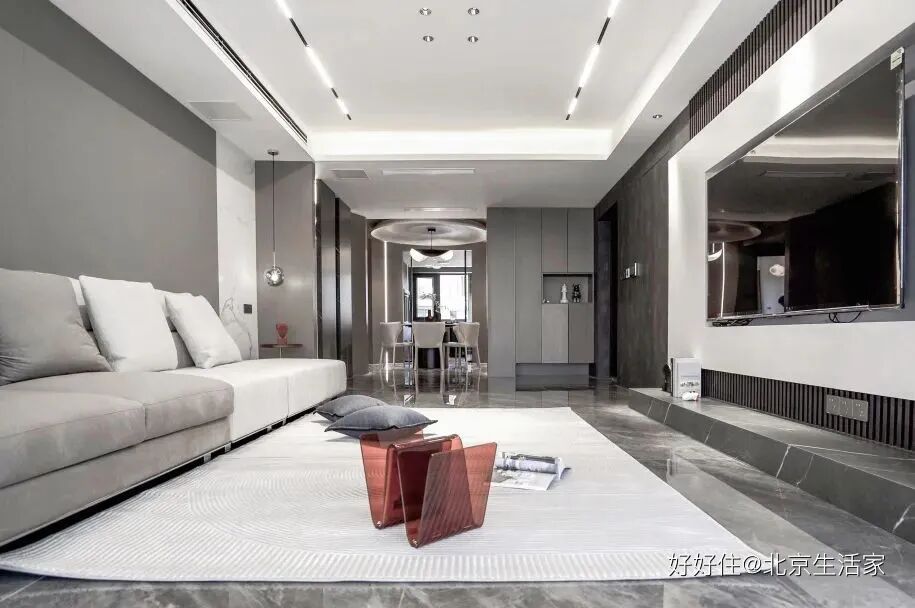 北京生活家:可以看到客厅没有设置茶几,进一步扩大中间通道的空间,也可以让小孩在家随意奔跑玩耍,在地毯上和父母互动,让客厅始终处在情感流淌的场景之中。