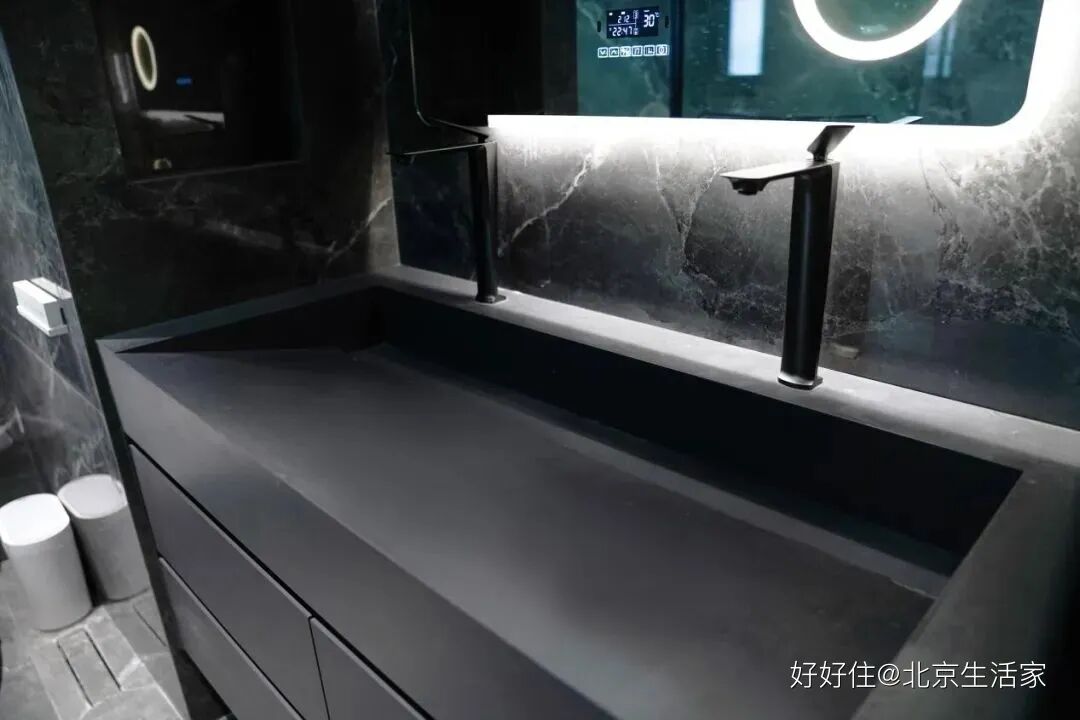 北京生活家:洗面盆采用了斜坡式的设计,自然下流排水,保持台面上干燥与清洁。双龙头可同时供两人使用,互不打扰。
