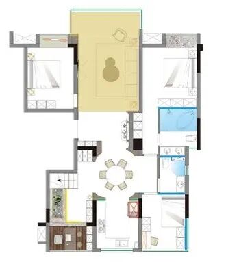 这套230㎡的房子位于四川成都,业主是一对90后年轻小夫妻,有一个3岁的女儿,希望随时随地都能在家里度假。设计师将阳台纳入客厅改成一整面落地窗,开阔的空间让小朋友可以随意奔跑玩耍,闲暇时一家人坐在茶室喝茶赏景,还有露台打造成的私人影院和秘密花园,周末时一家人在这里享受BBQ、露营、亲子活动,实现足不出户的快乐。