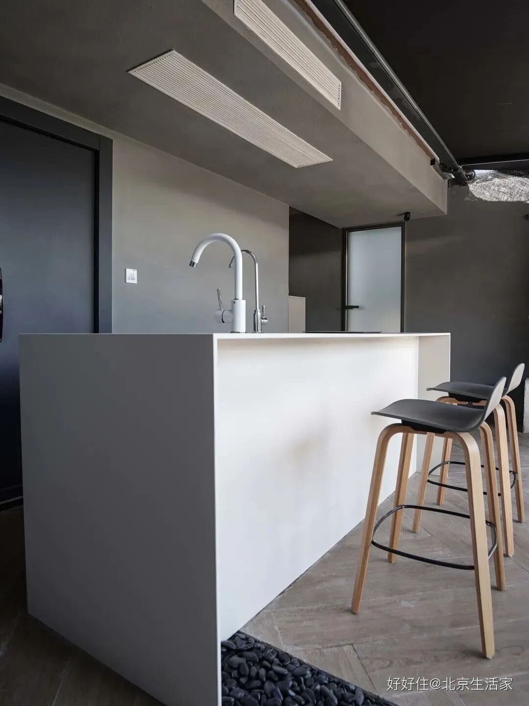 北京生活家:大大的岛台搭配吧台,设置了电磁炉和水槽,不论是热食还是冷饮都可随意定制,满足家人的需求。