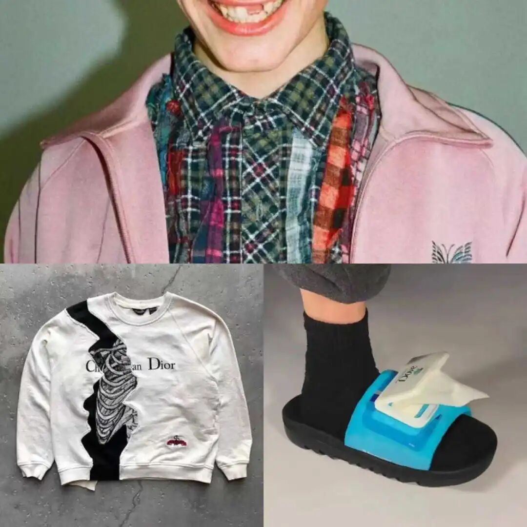 但remake也不一定很奢侈才能得到大家的喜爱。美国品牌 Defective Garments的设计师Zac Cabrera自小生活比较节俭,会在网上售卖一些搜罗到的残次品古着改造。久而久之,ins上出现了一批 Zac的死忠粉。