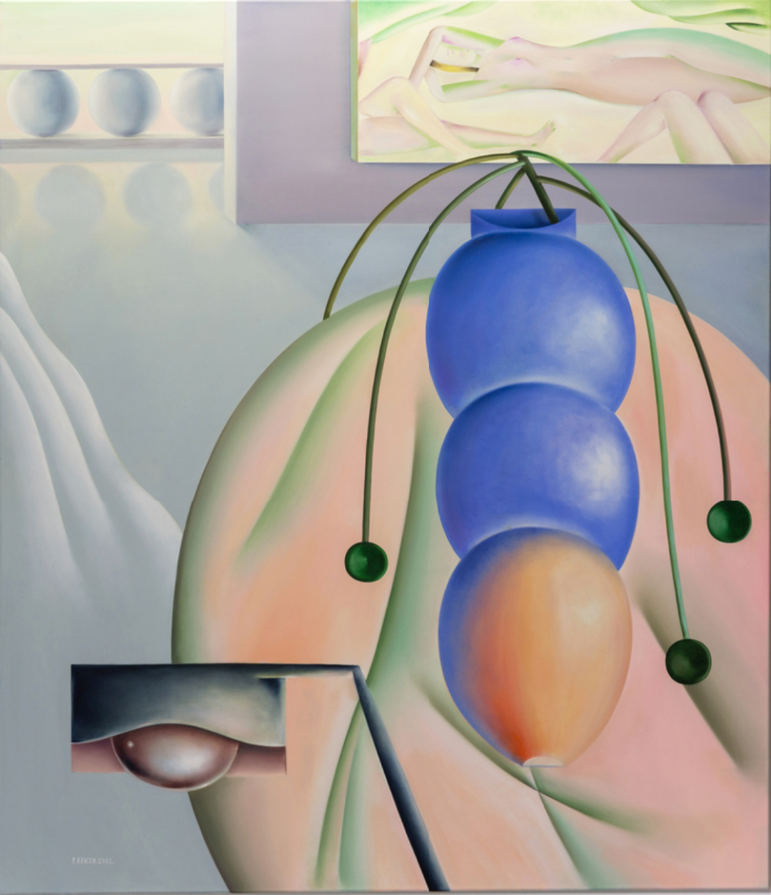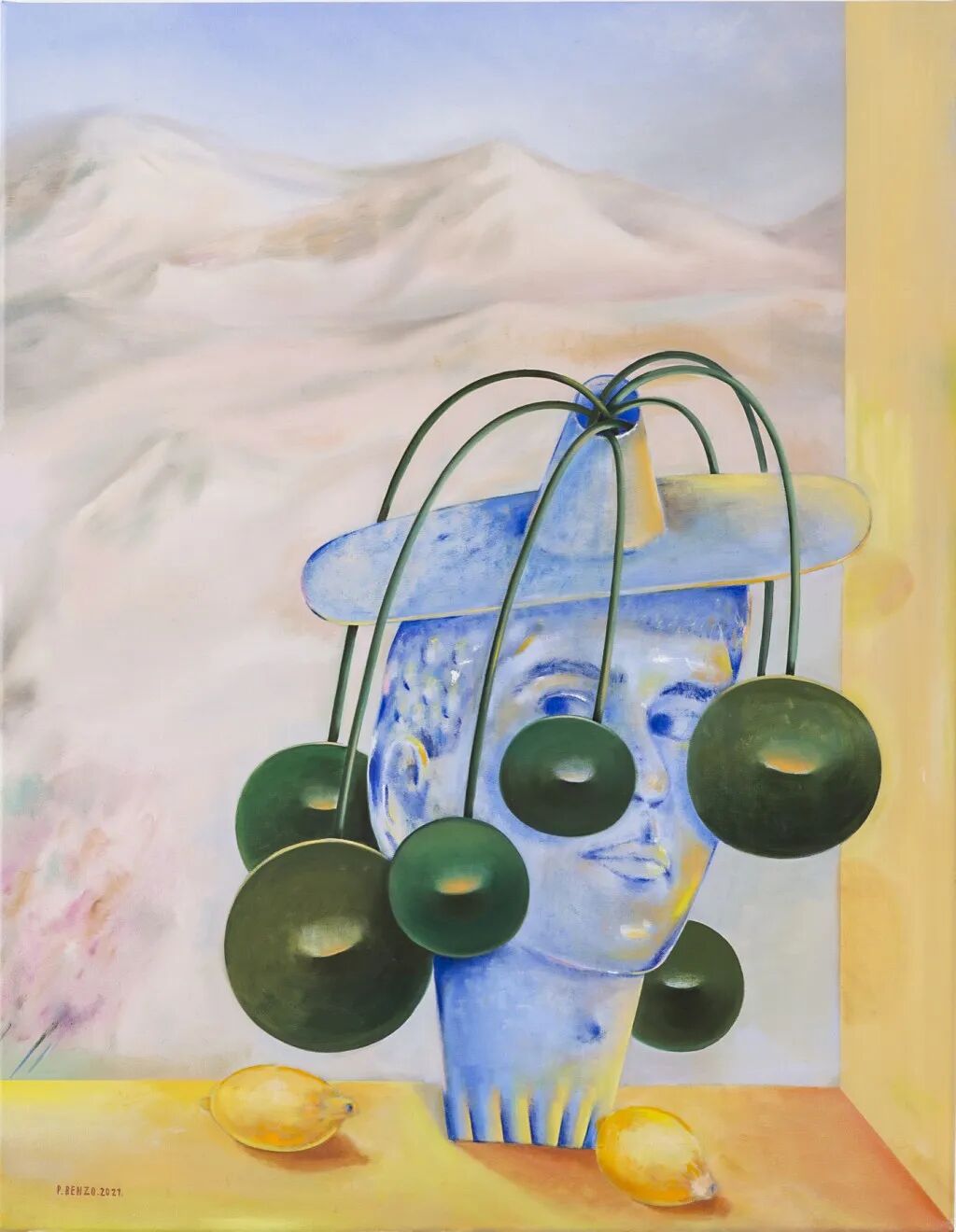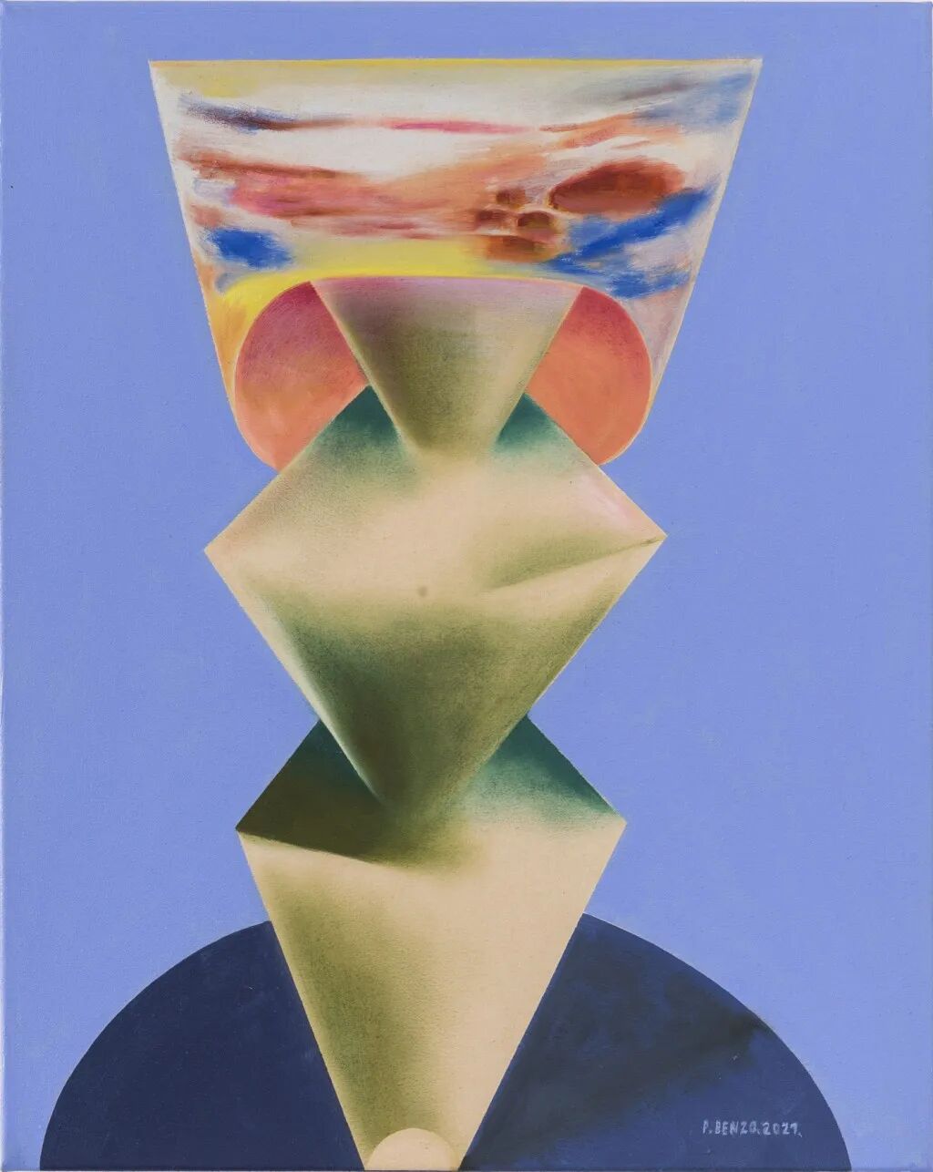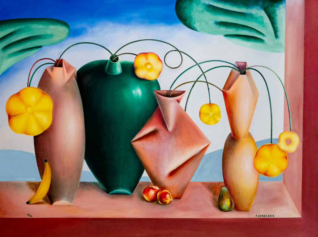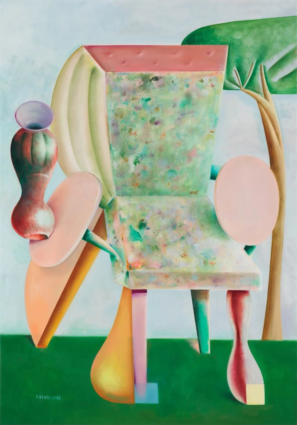 巴勃罗·本佐专注于一种构图和渲染天鹅绒般表面的方法,他玩渐变,通常要到达某种颜色过度饱和的色调,与暗淡和中性的背景形成对比,创造出一种自由或混乱的氛围。在最新作品中,巴勃罗将近乎人类的特征元素赋予对象,通过笔触丰富的图案添加了一种更具表现力的绘画手法。他作品的网上销售价格在1千至2万欧之间,供参考。