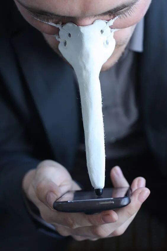 在鼻子上套一个“鼻触笔”