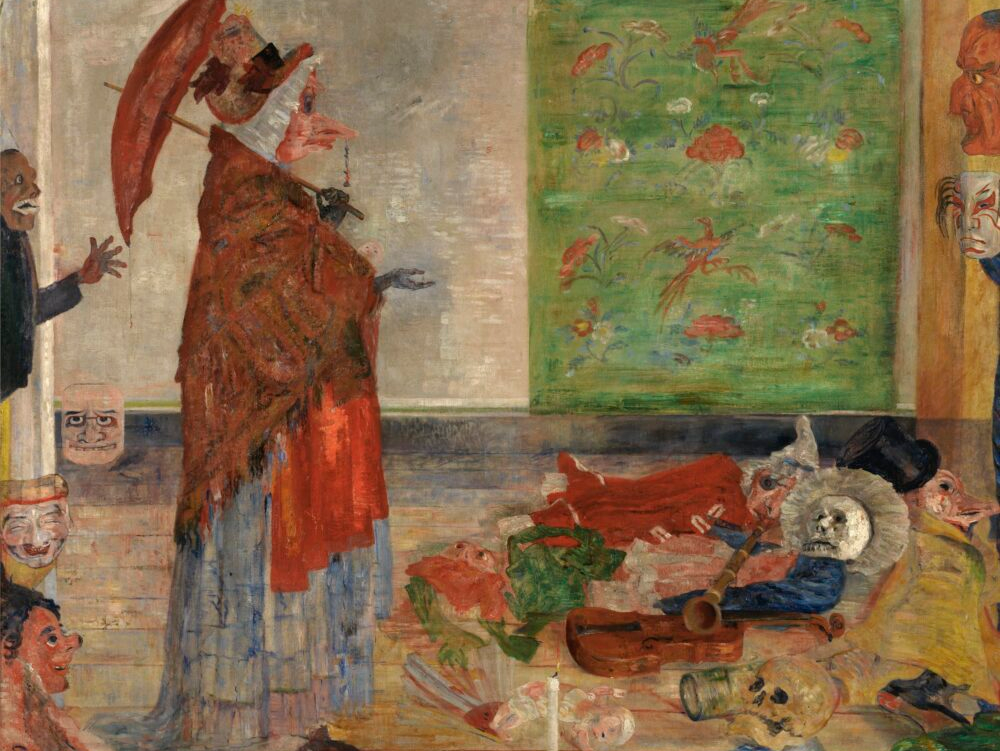《骷髅为一个倒吊人而战 1891》和《面具的震惊 1889》