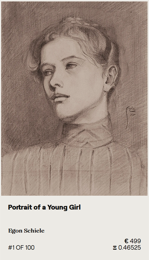 还记得开头我们提到和大英博物馆合作的 LaCollection 平台吗?他们近期还与利奥波德博物馆合作推出了 Egon Schiele(埃贡·席勒)的数字 NFT。