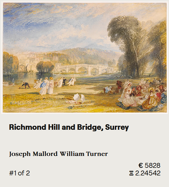 很多人会觉得艺术品的 NFT 化只是一种图像反馈,而不是一种的价值反馈,因为 NFT 只能反映一副作品的图像数据,所以大家会觉得为什么不用这些钱去买本威廉特纳的作品合集。