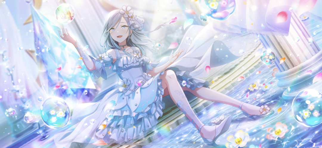 这些产品的核心概念已经非常细分了,但更重要的是在游戏内,它们还会对每个角色和卡面进行故事化的阐释。尽管各自角度不同,不过都达到了一张卡包含一个完整故事的级别,而为了达到这种表现水平,很多产品都把2D绘画力拉满了。看一个《Shiny Colors》的例子就能感受得到。