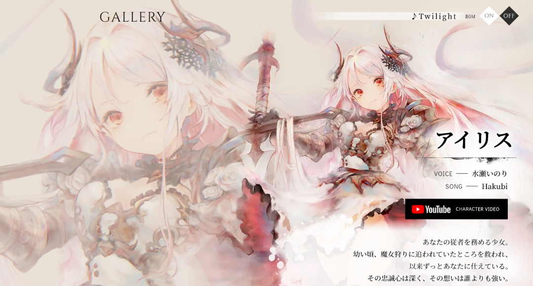 比如《神殺しのアリア》虽然立绘不算特别顶配,但KV灵活运用少女、弑神、成为恶魔等关键词,构建了一个“看似让人却步,且明显发生了很多大事”的场景,角色所处的位置和伸出的手,恰好在配合玩家看到画面时的心理,做出“跟我来吧”的暗示。
