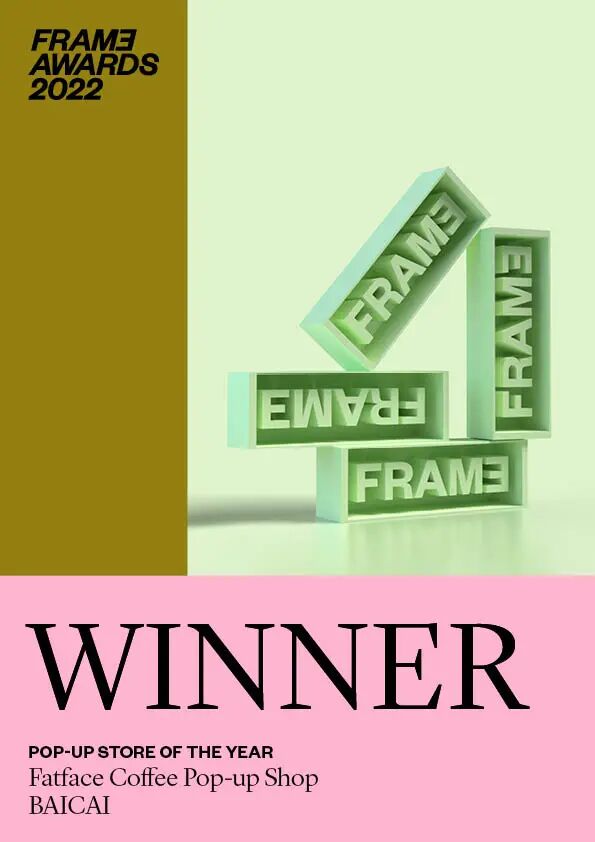 荷兰时间10月13日晚,FRAME于阿姆斯特丹揭晓了最终年度获奖名单,我们荣幸地宣布,白菜设计以FATFACE咖啡快闪店荣获FRAME AWARDS 2022年度快闪店大奖POP-UP STORE OF THE YEAR。