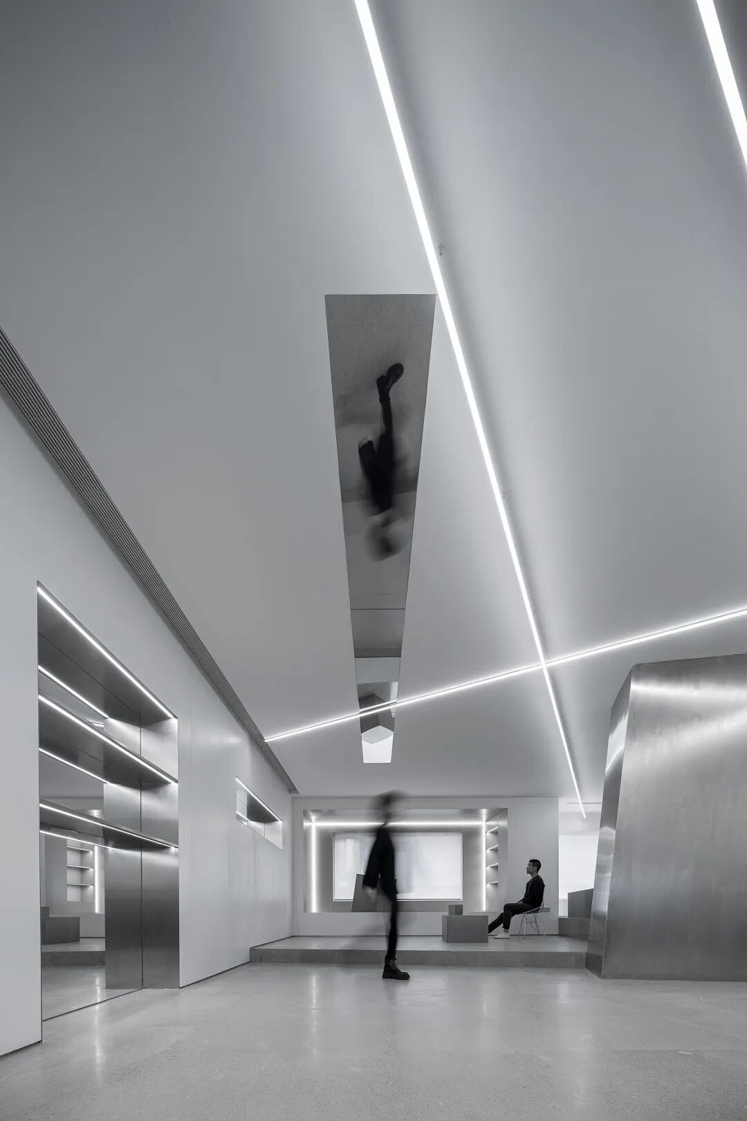 LOVIVO gallery是在前帆竞合一、二层的概念空间。空间的理念从科技入手,提取出“未来”和“信息爆炸”作为构成的核心,从中推导出悬浮、体块、无限、金属、未知、网络一系列情绪点。当下科技飞速发展,人类面临是一个无限的未来,以及无限的未知。科技公司,一定是作为探索者走在这条路的前面,路的尽头无人能够预见,但对于这个未知命题的持续思考,是科技从事者的社会责任。空间锻造了一方信仰场所,输出了一条讯息,有关科技,有关敬畏,有关未来。