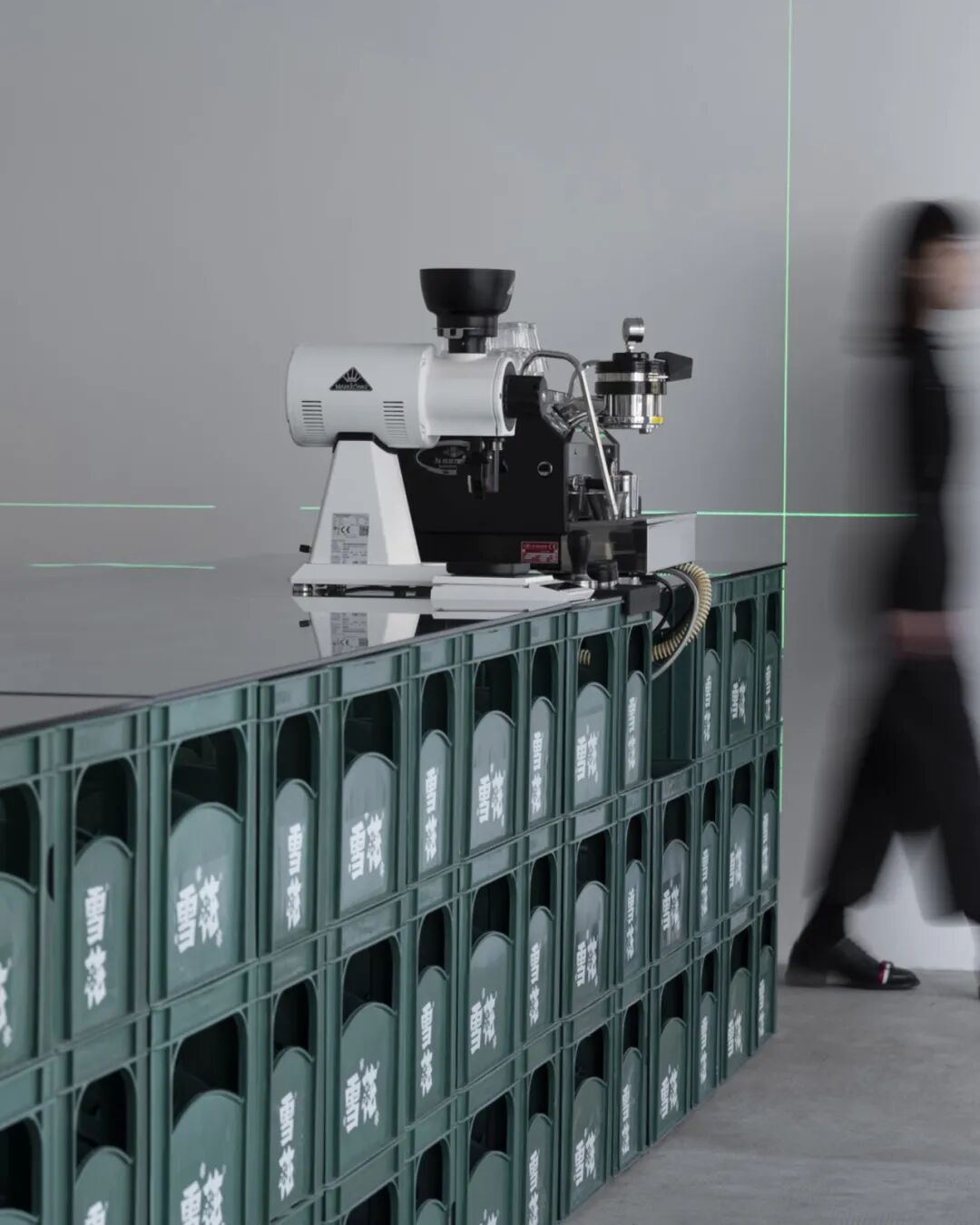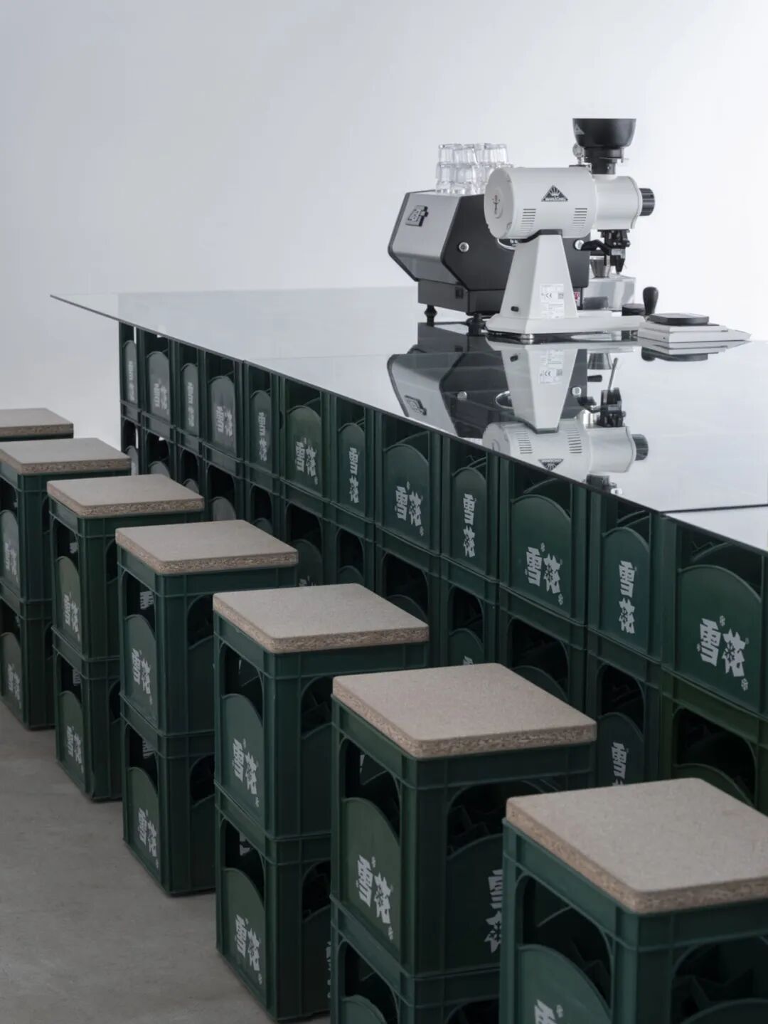 白菜设计用300个啤酒箱组成了沈阳这间咖啡店的室内家具