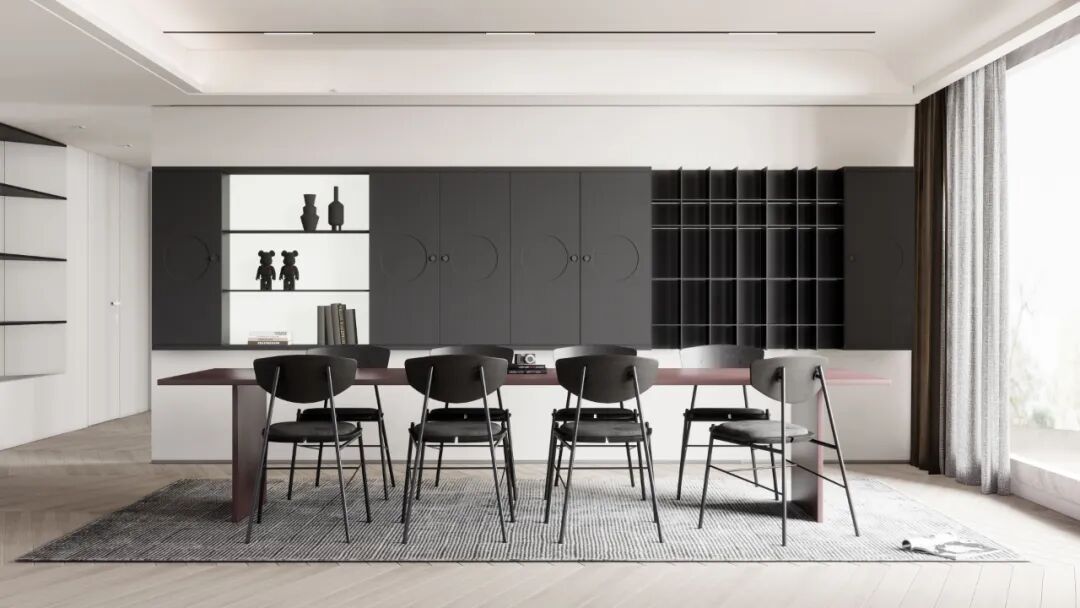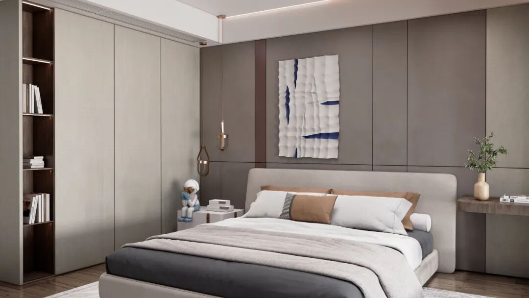 白色与不同深浅的灰色搭配,营造出宁静雅致的空间氛围,低调中又散发一种高级感韵味。