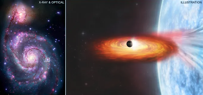 该团队注意到 X 射线亮度的下降,这暗示着一颗行星在距离我们 2800 万光年的梅西耶 51(又名 M51)星系中的一颗恒星前经过。