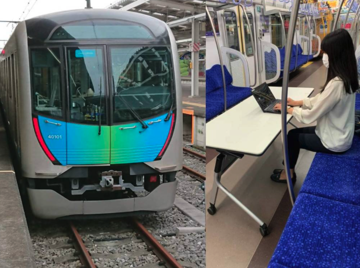 # 日本电车设办公桌 在哪都能工作了