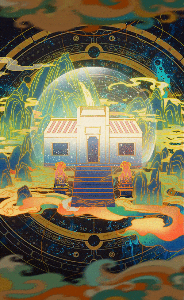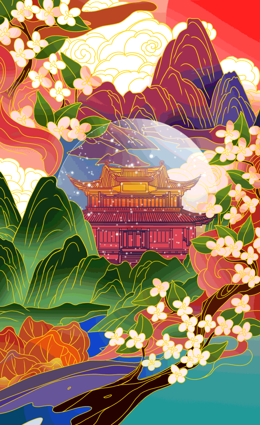 檐角上造型生动的小兽也在树叶丛中若隐若现,仿佛在古树身后窃窃私语。