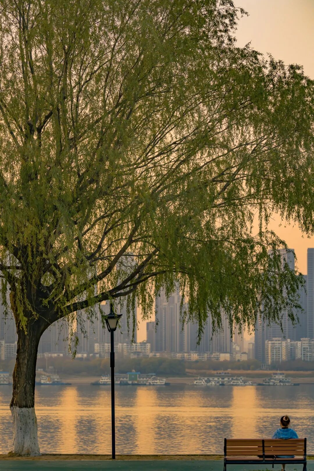 一树一灯一江一椅,不知道宁静了多少人的内心。