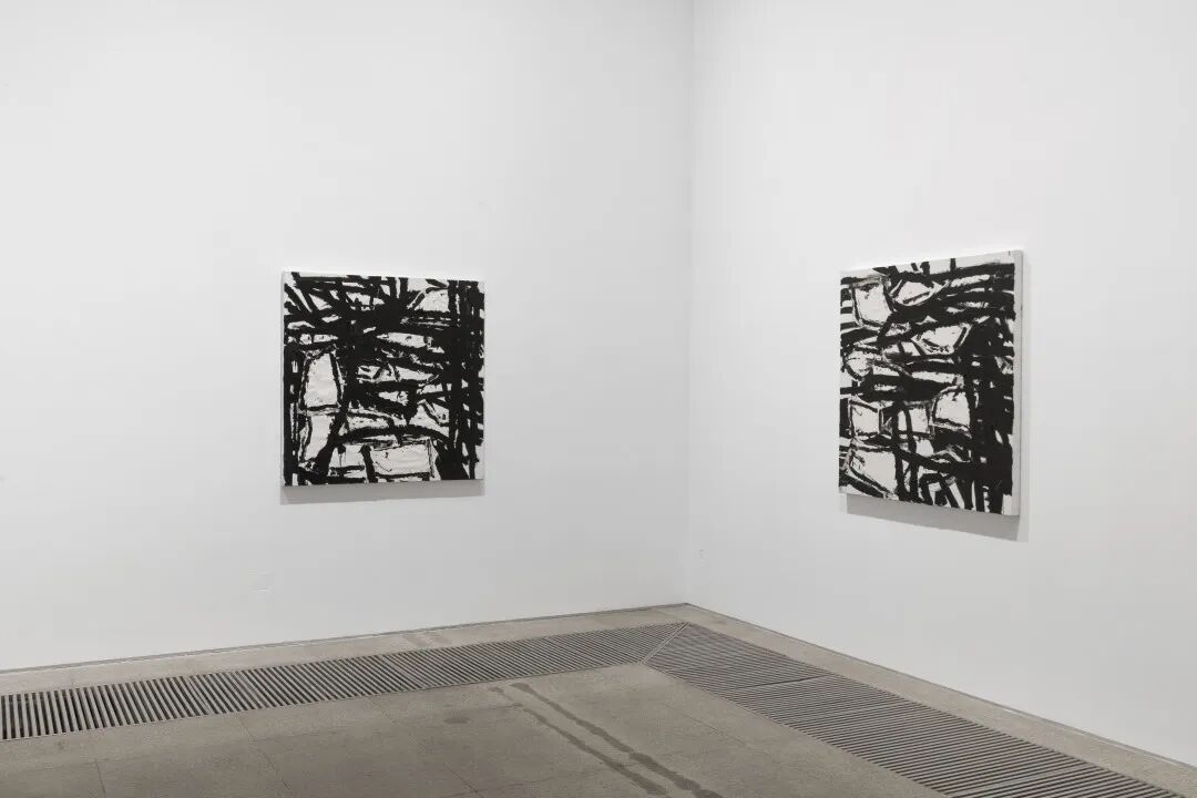 (左)冯良鸿《知秋 22-31》 布面油画 150x150cm 2022