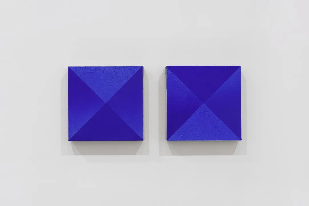 (Left) MA Shuqing, Concave-Convex 2022-1, Mineral color powder Propylene mediator Linen cloth surface 43x43cm 2022