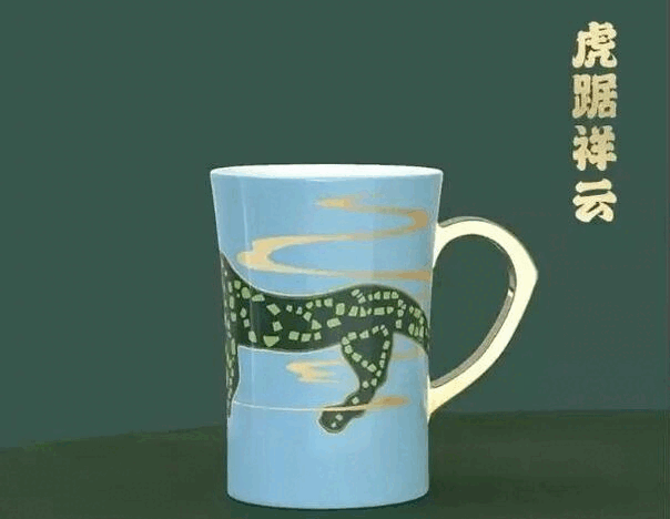 其中“虎踞祥云”陶瓷杯特地以三星堆文物铜虎为原型,铜虎踏金而来,围绕杯身,首尾相连遥相呼应,寓意美满和谐万事兴,祥瑞如意紧相随。而“虎跃三星”陶瓷杯则以三星堆文物玉璋和铜虎为原型,杯身多虎环绕,气势雄厚而精美,寓意平安吉祥等寓意。