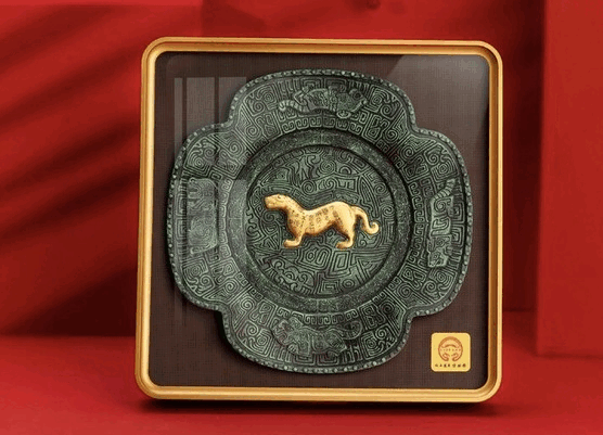 陕西历史博物馆的馆藏文物杜虎符于 1975 年出土,保存完整、造型生动。虎身上还装饰有九行四十字的错金铭文,记录了秦国的用兵制度。这是我国迄今为止发现的最早的兵符,也是现存最精美、传神的虎符文物。虎年到来之际,陕西历史博物馆以杜虎符为灵感,联合地方黄金公司,推出了虎符贺岁主题贵金属文化产品——《虎福》系利,以黄金、白银珍贵材质为载体,将经典文物重塑和再造。