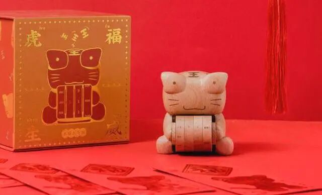 此外,中国国家博物馆还发行了虎福生威木质万年历。将玉虎头的独特造型移至木材之上,放大虎头的可爱特征,再加上用滚轴转动的万年历设计,使万年历在使用与展示功能之外,获得了更加有趣独特的属性。