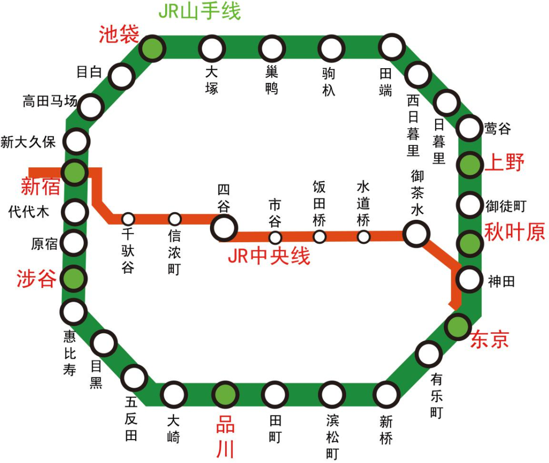 图3:在东京使用频率最高的JR山手线和JR中央线-绘制:海上的香格里拉