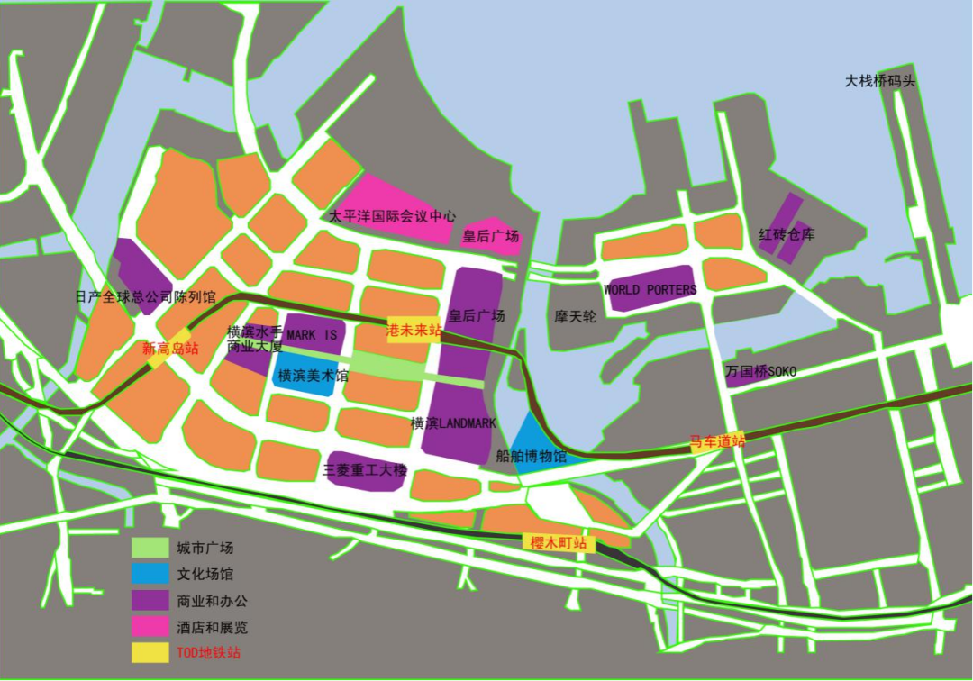 图1中东京23区的形状是围绕东京湾扇形展开的,而JR山手线环状线路的之内的区域,是东京都的中心地带,JR山手线(图3)TOD的特点是结合商业综合体或者商业街形成“站城一体”的TOD综合体。