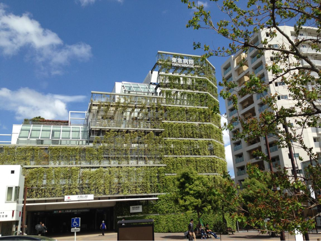 东急上盖医院由东急不动产开发,东京工业大学建筑系-安田幸一教授设计,医院的正立面爬满了绿植,可以让经常出入大冈山站的学生或者当地居民感受到四季的变化。地铁站的北面是区域服务型的商业街,南面是住宅区,西南方向是东京工业大学的本部。