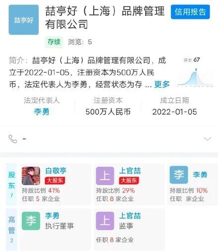 白敬亭和时尚前辈上官喆在2021年1月5日投掷500万,在上海成立了一家新公司——“喆亭好”(上官喆+白敬亭=喆亭好),各包含了二位名字中一个字,同时又用上了“这挺好”的谐音梗。